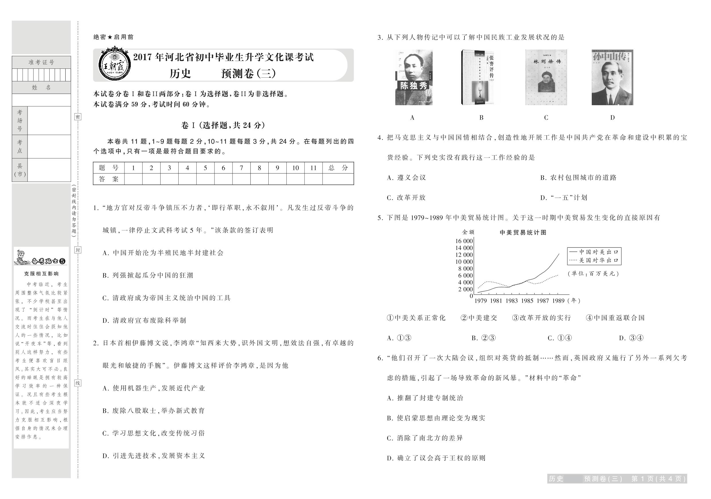 2017年河北省普通高中招生考试试卷历史·预测卷(三)