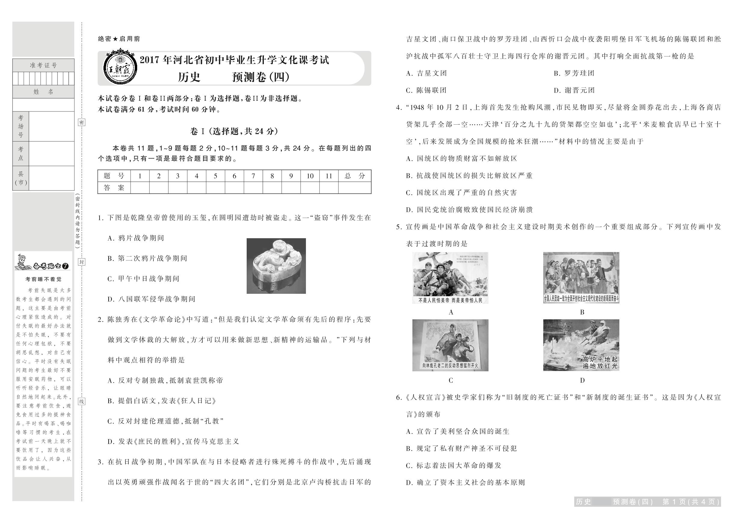 2017年河北省普通高中招生考试试卷历史·预测卷(四)