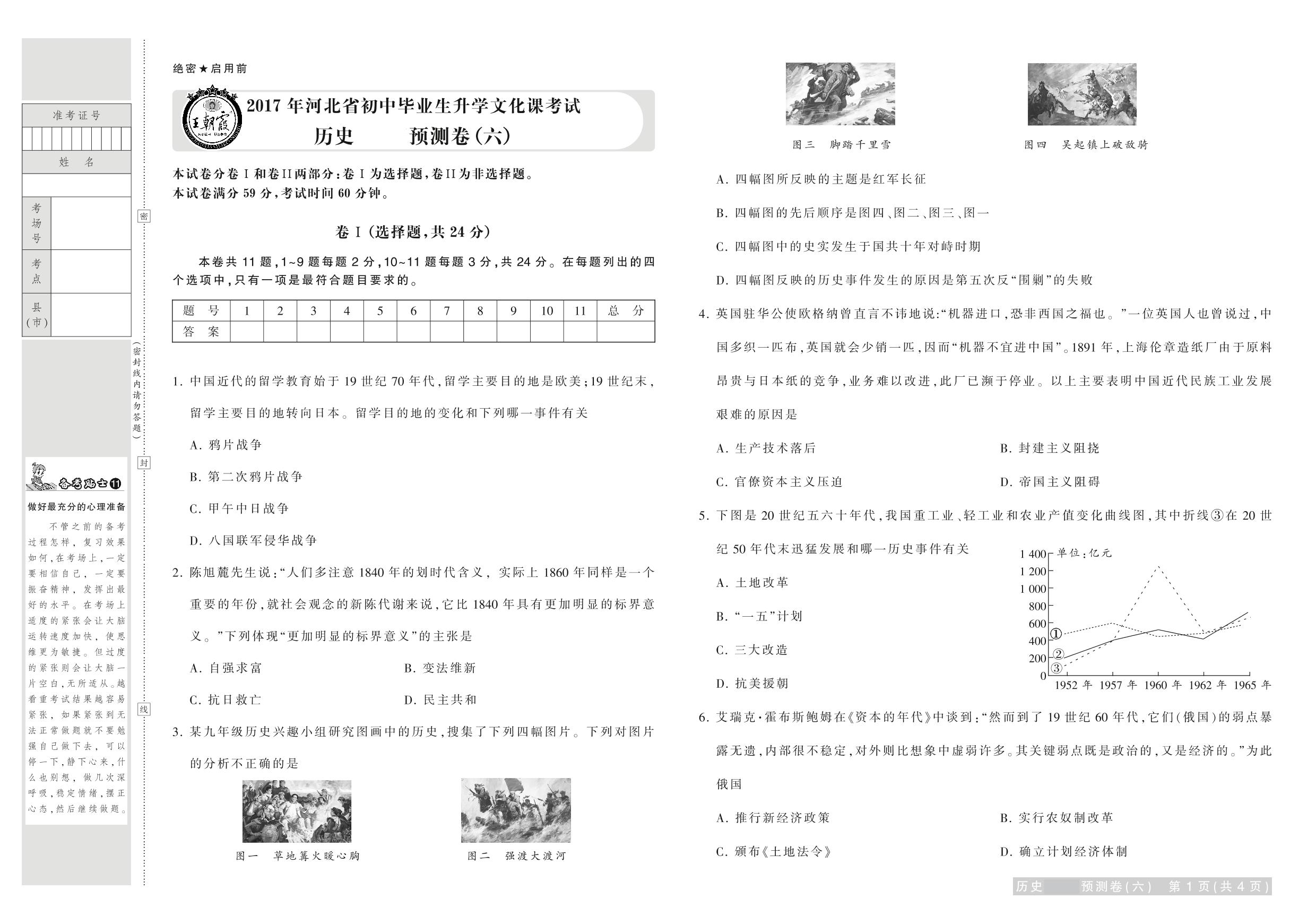 2017年河北省普通高中招生考试试卷历史·预测卷(六)