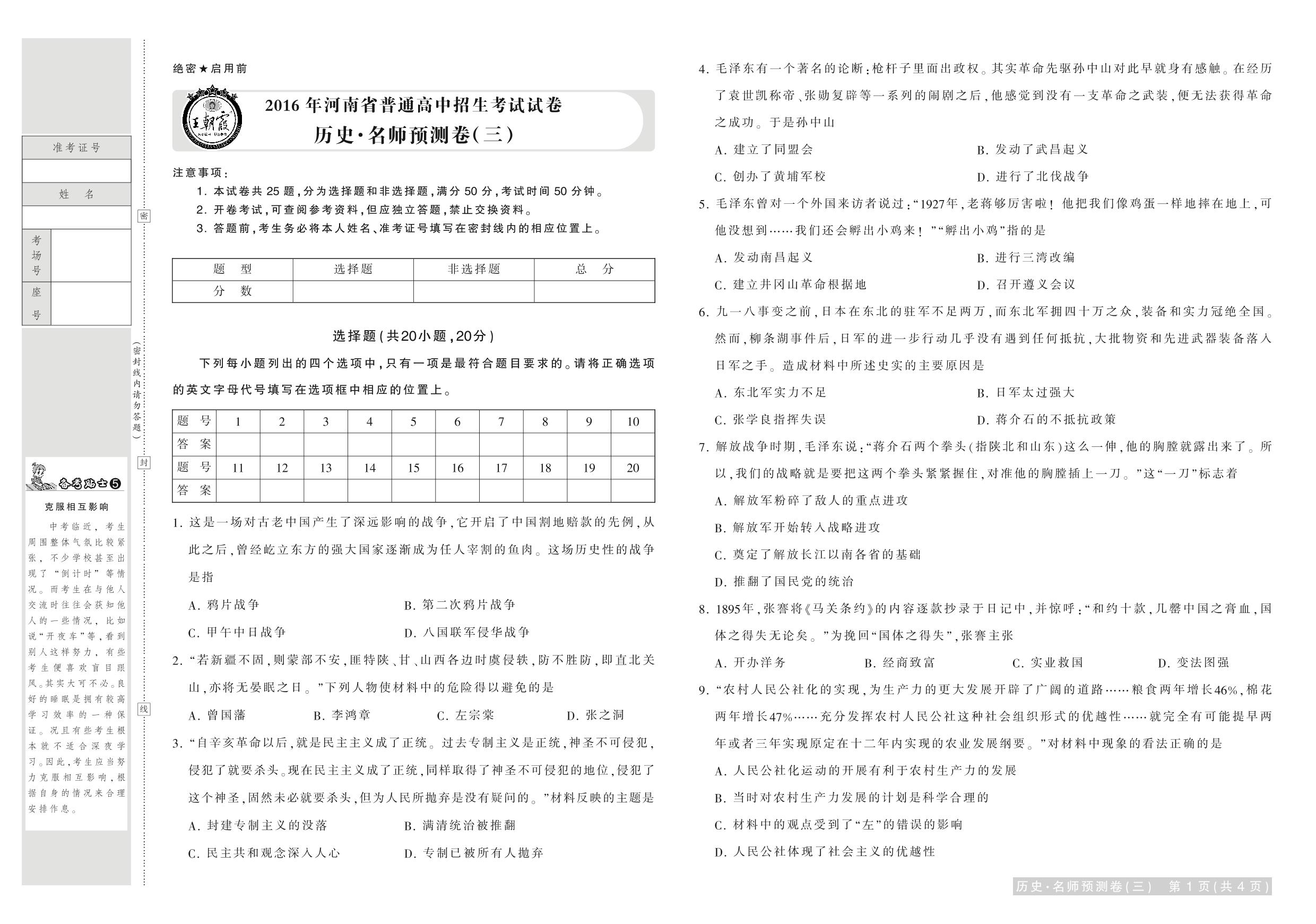 九年级历史全国通用中考卷