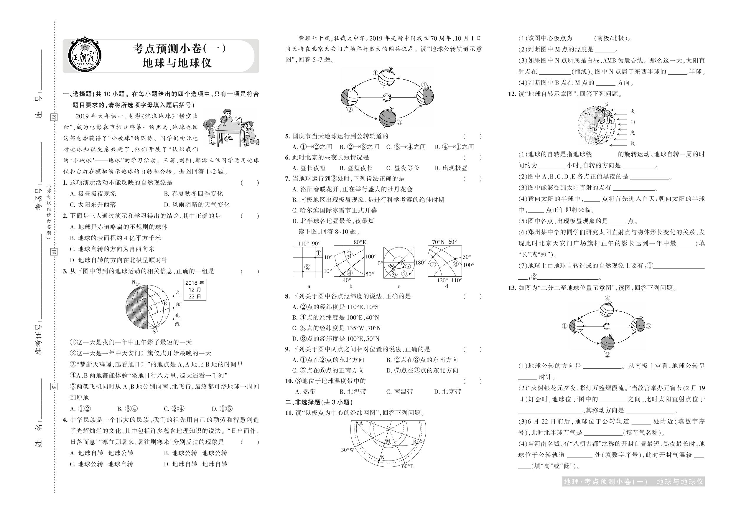 2019年河南中考地理考点预测小卷(一)地球与地球仪