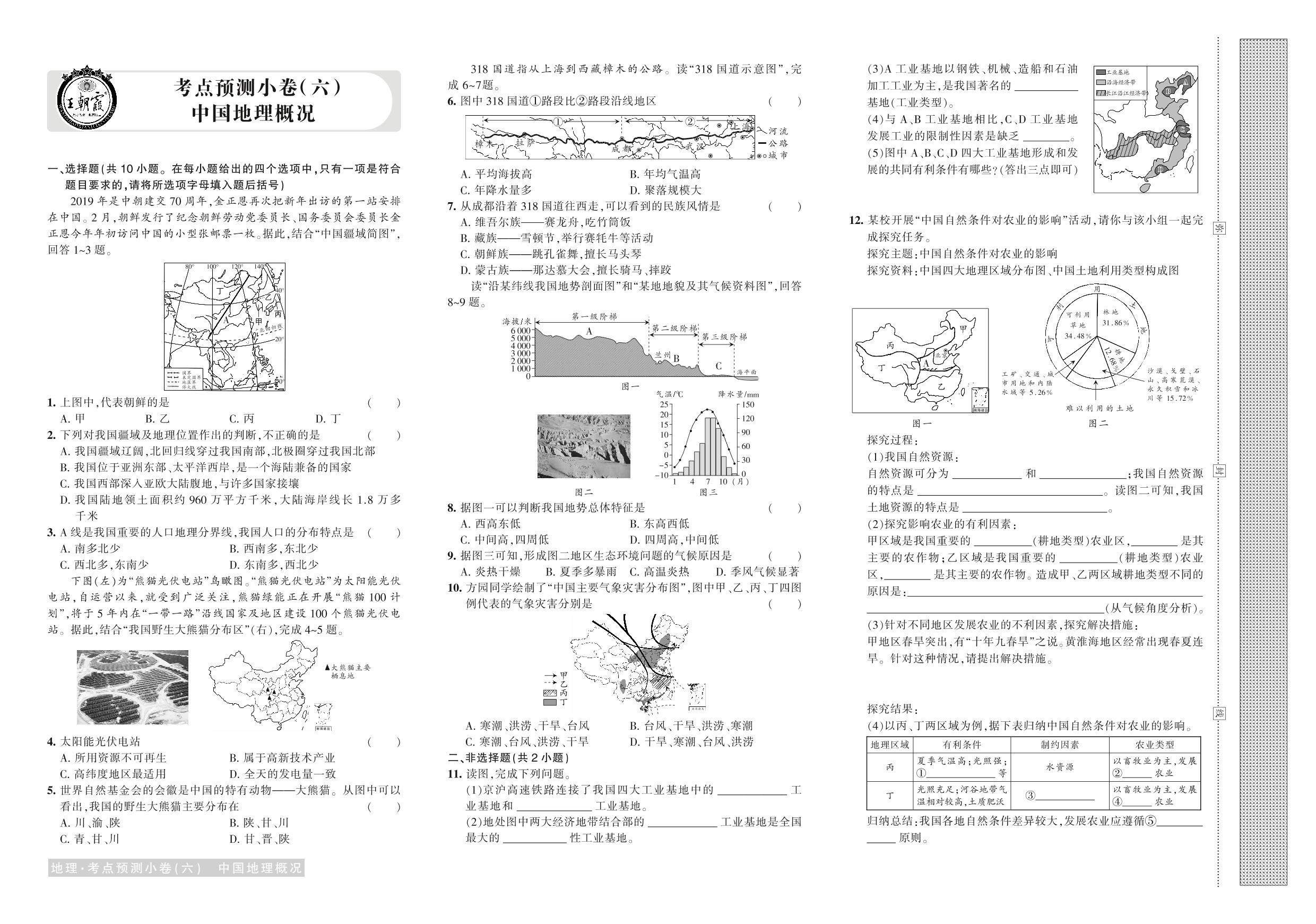 2019年河南中考地理考点预测小卷(六)中国地理概况