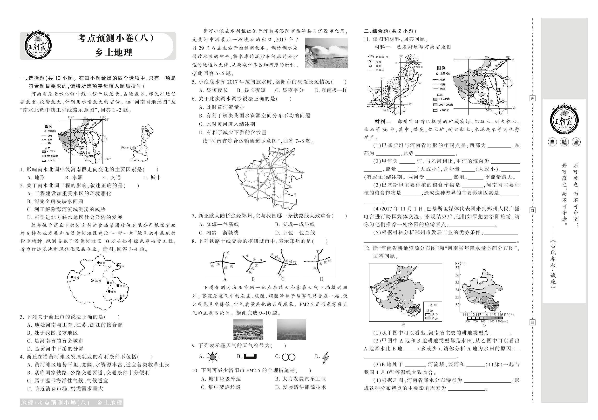 2018年河南中考地理考点预测小卷(八)乡土地理