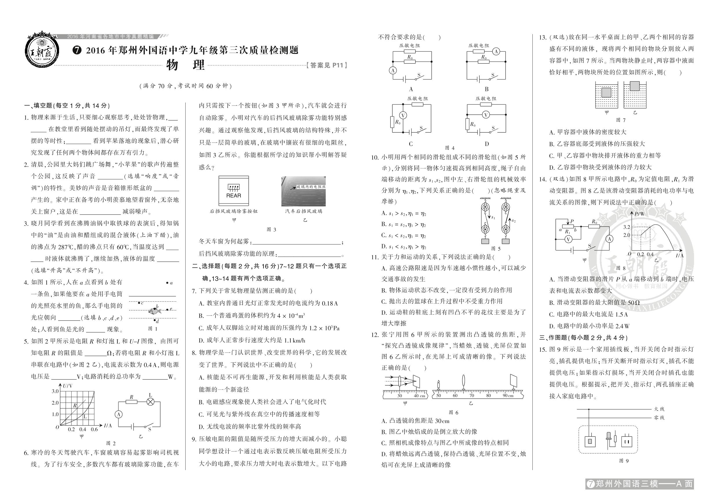 2016年郑州外国语中学九年级第三次质量测试题【7】