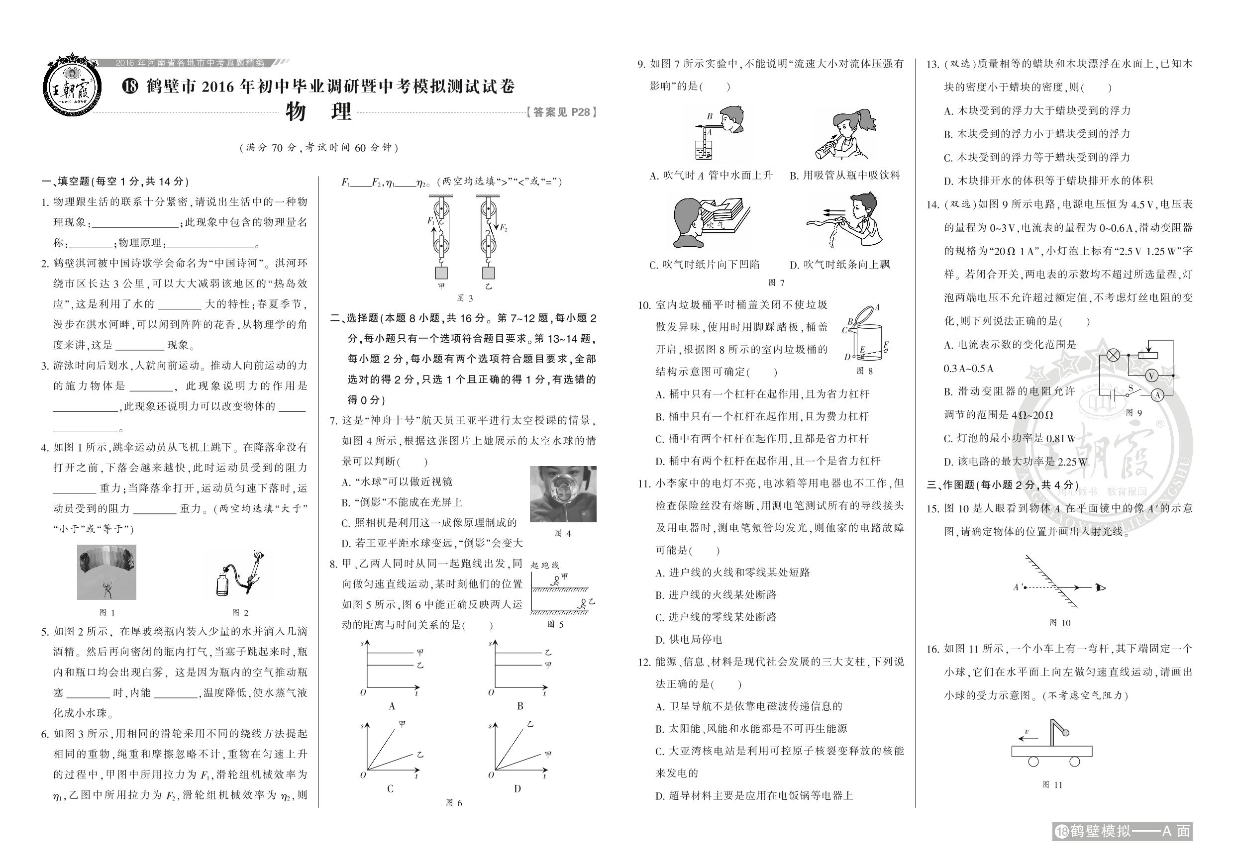 鹤壁市2016年初中毕业调研暨中考模拟测试试卷【18】