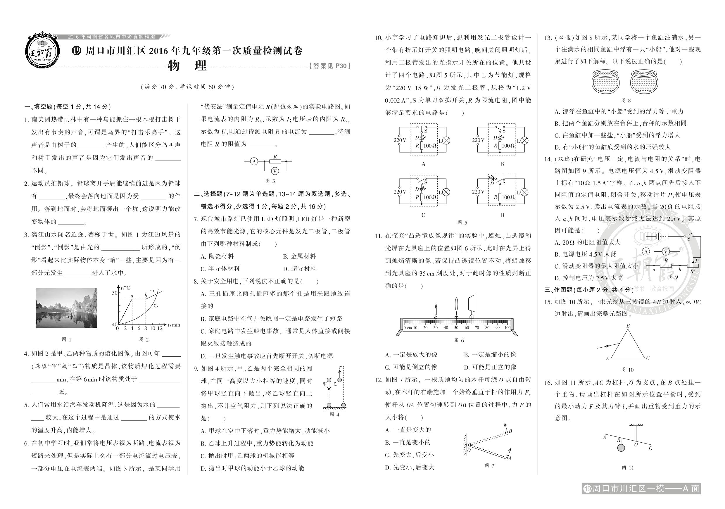 周口市川汇区2016年九年级第一次质量检测试卷【19】