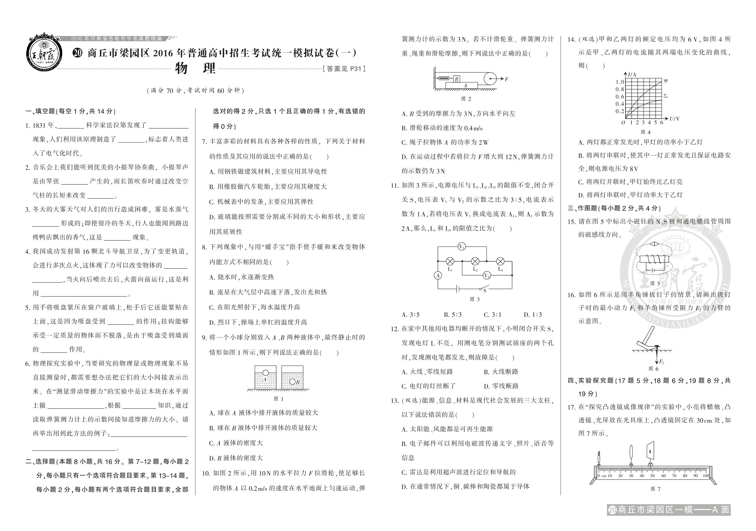 商丘市梁园区2016年普通高中招生考试统一模拟试卷(一)【20】