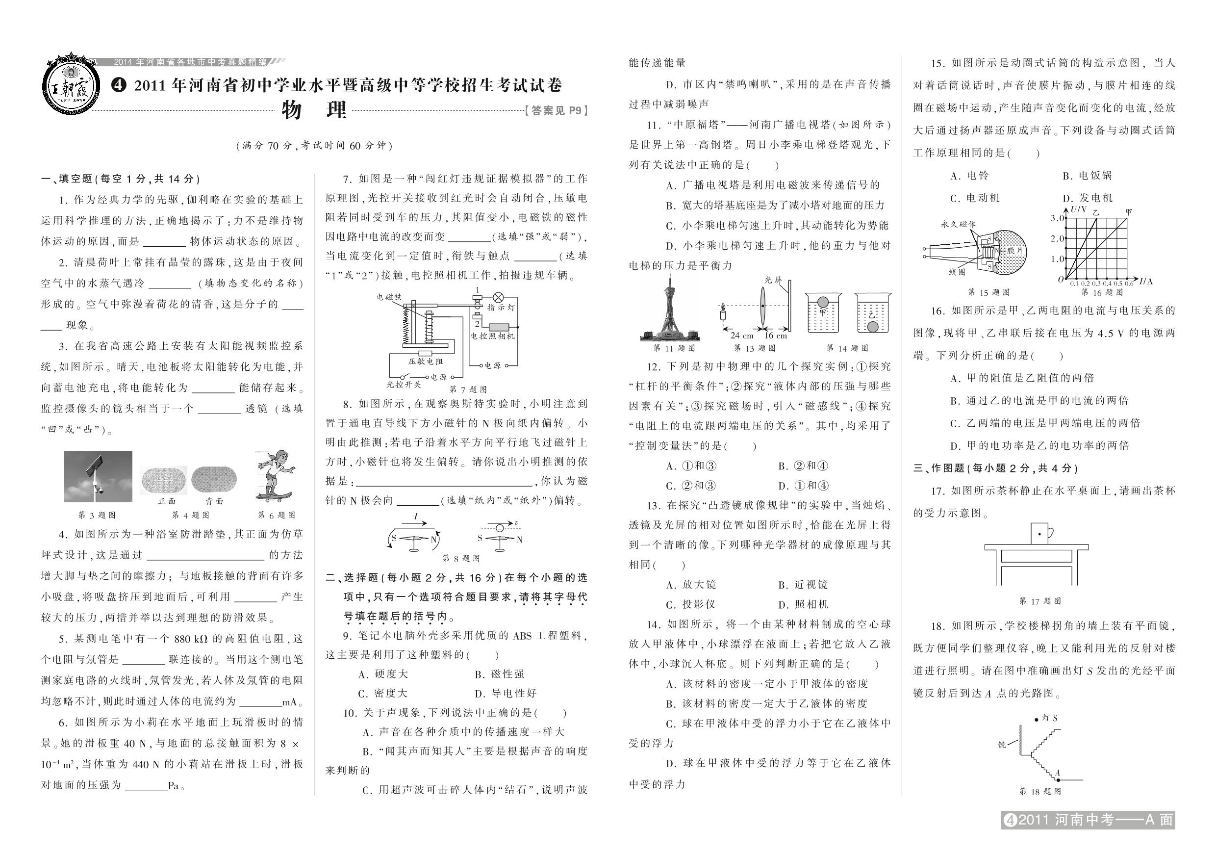 2011年河南省初中学业水平暨高级中等学校招生考试试卷【4】
