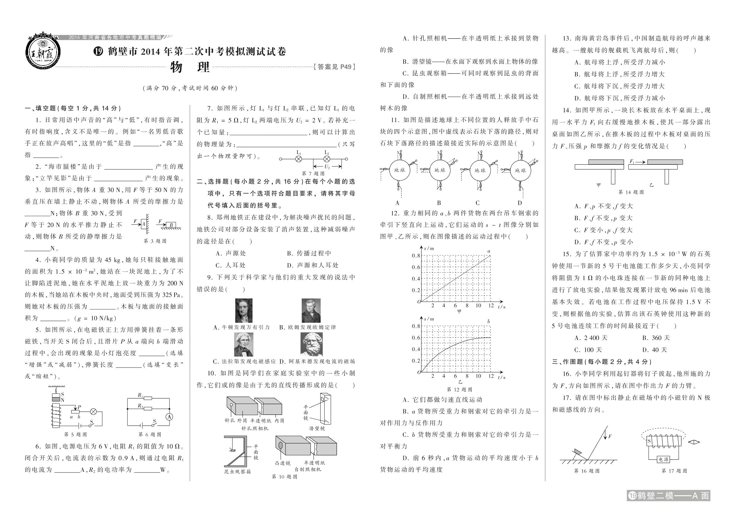 鹤壁市2014年第二次中考模拟测试试卷【19】