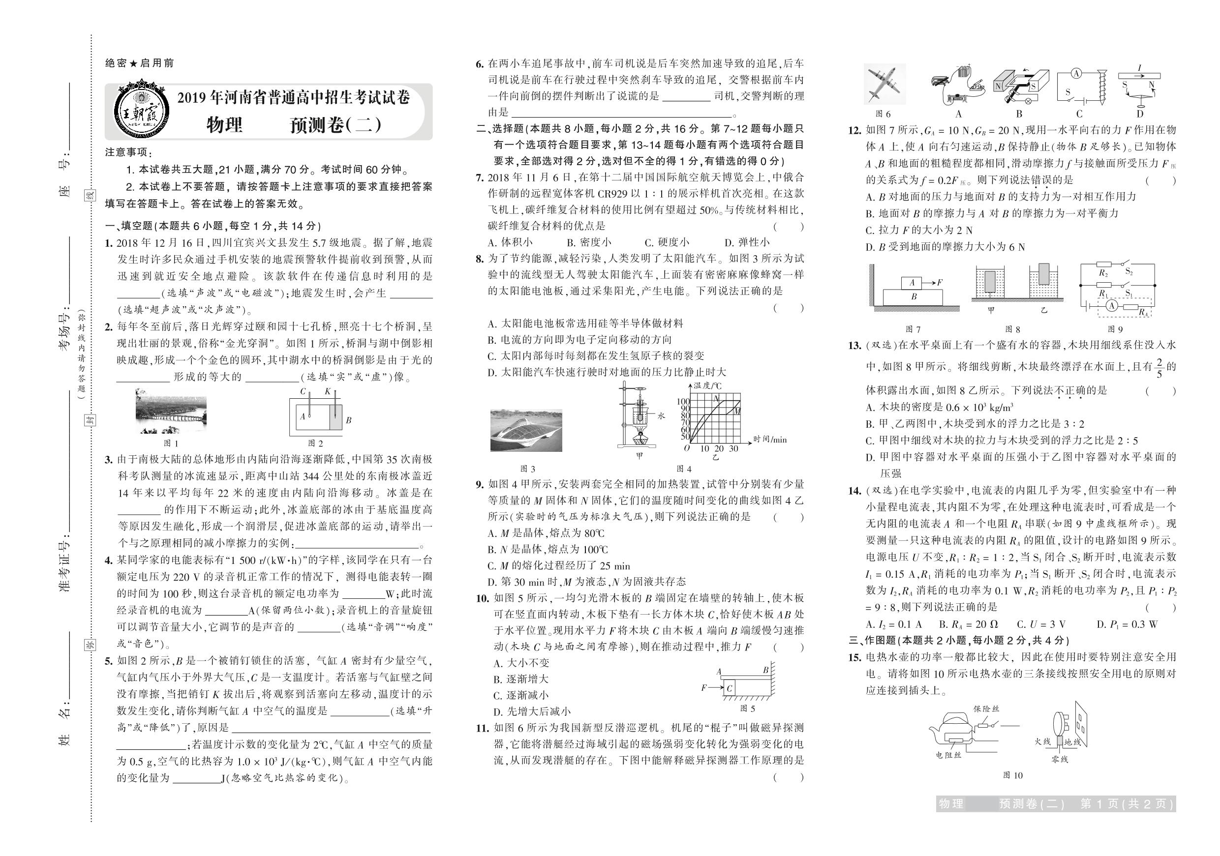 2019年河南省普通高中招生考试试卷物理·预测卷(二)