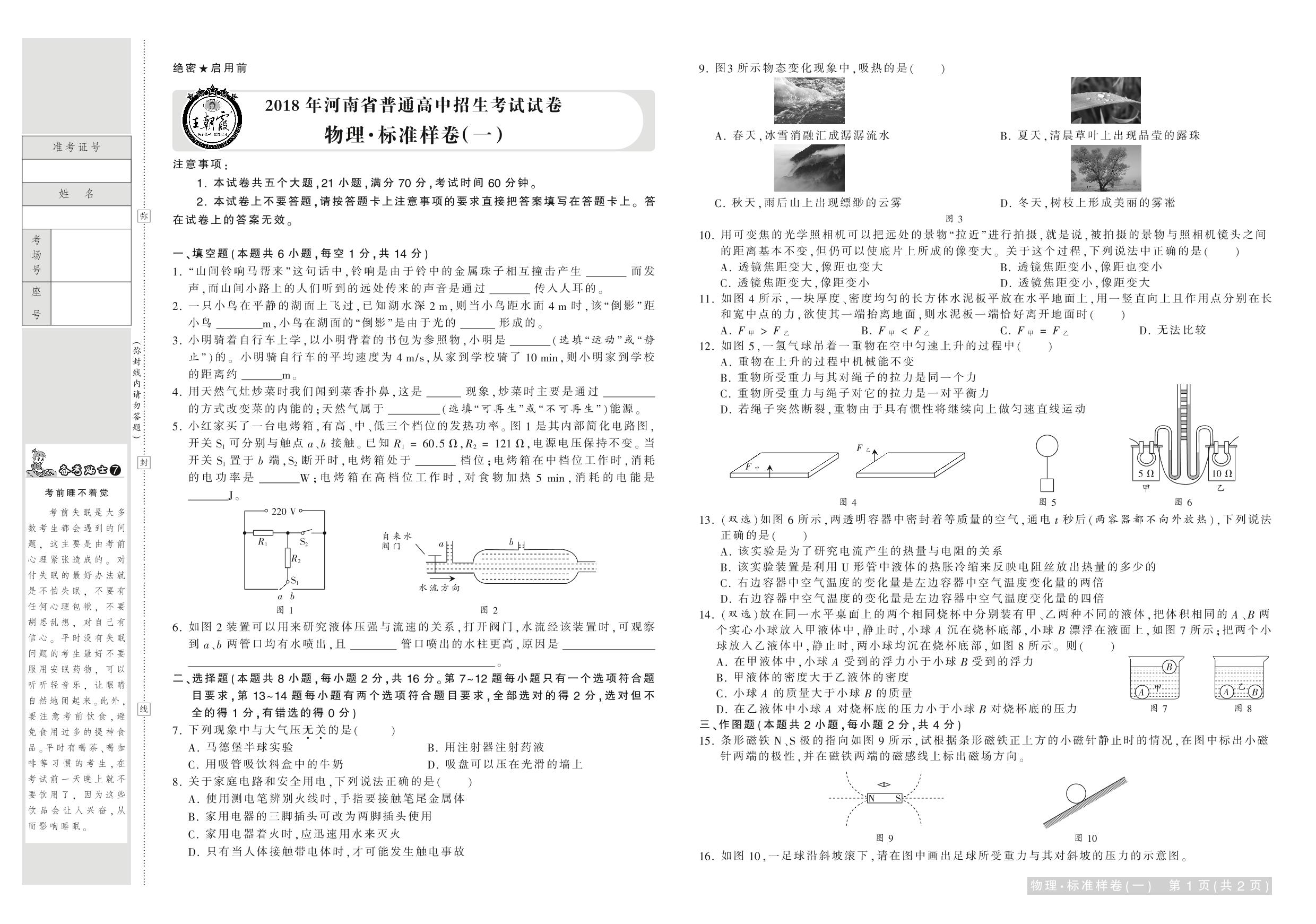 2018年河南省普通高中招生考试试卷物理·标准样卷(一)