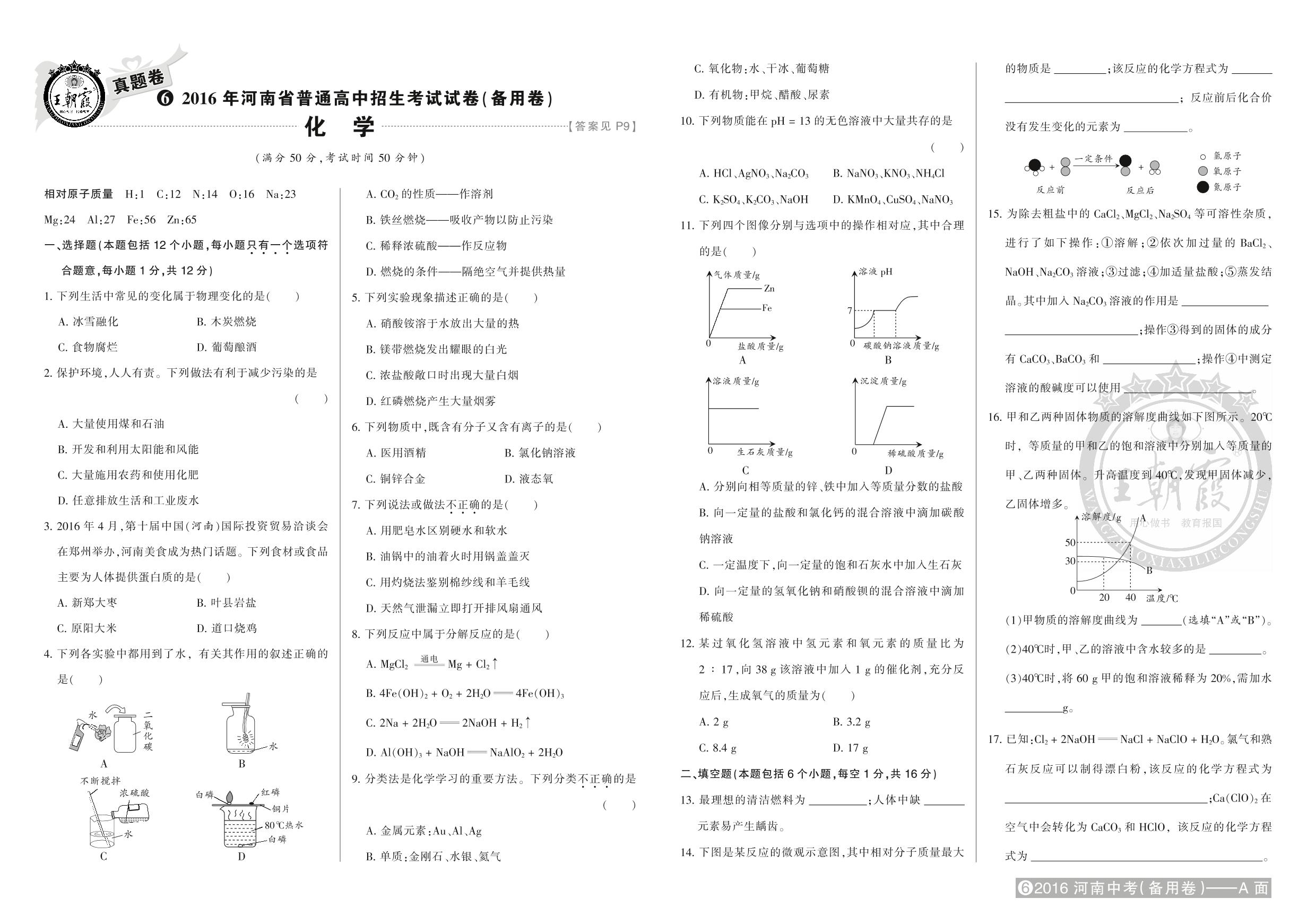 2016年河南省普通高中招生考试试卷(备用卷)【6】