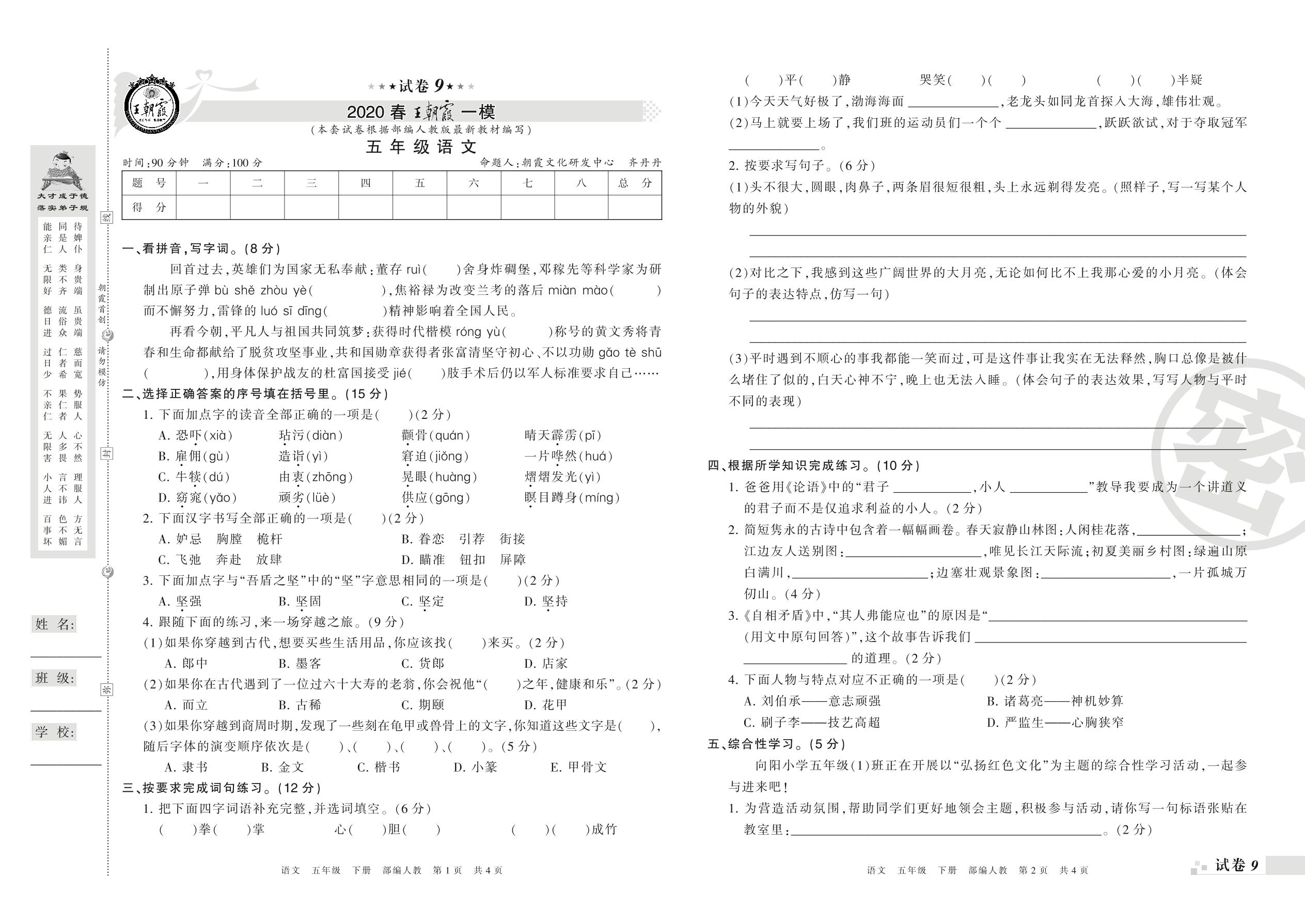 王朝霞期末模拟卷五年级下册语文(人教版)_R210801193724【9】
