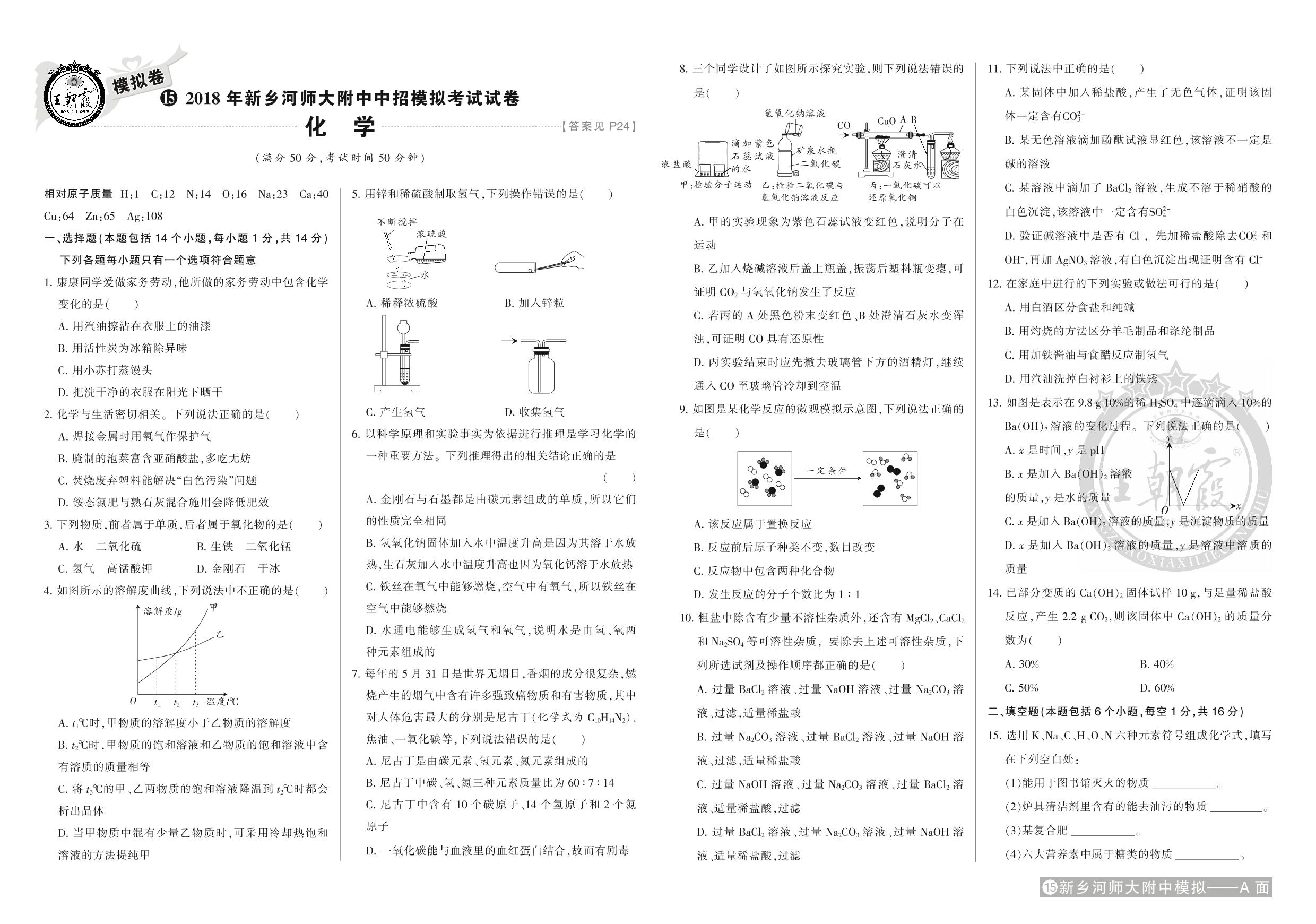 2018年新乡河师大附中中招模拟考试试卷【15】