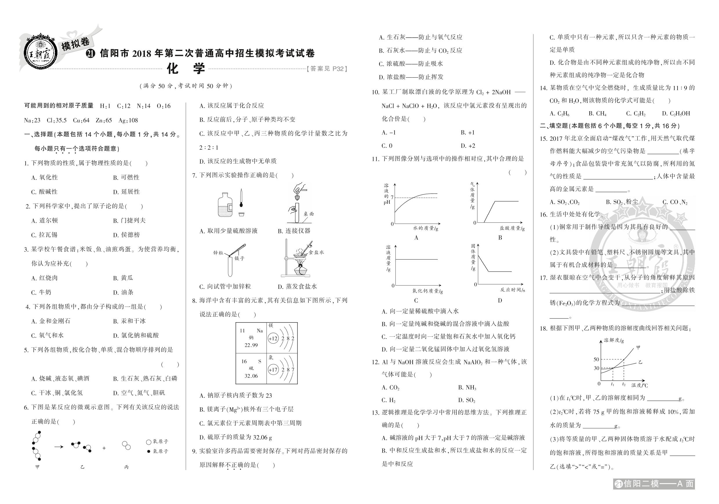 信阳市2018年第二次普通高中招生模拟考试试卷【21】