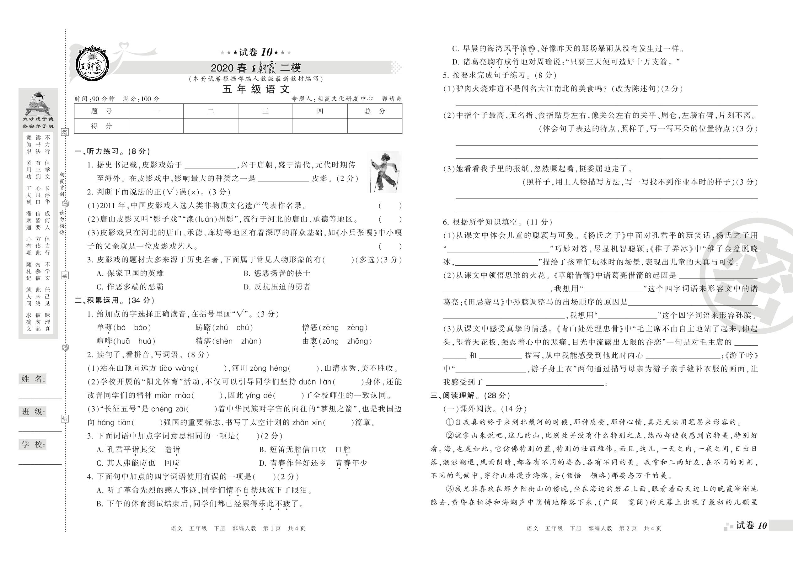 王朝霞期末模拟卷五年级下册语文(人教版)_R210801193729【10】