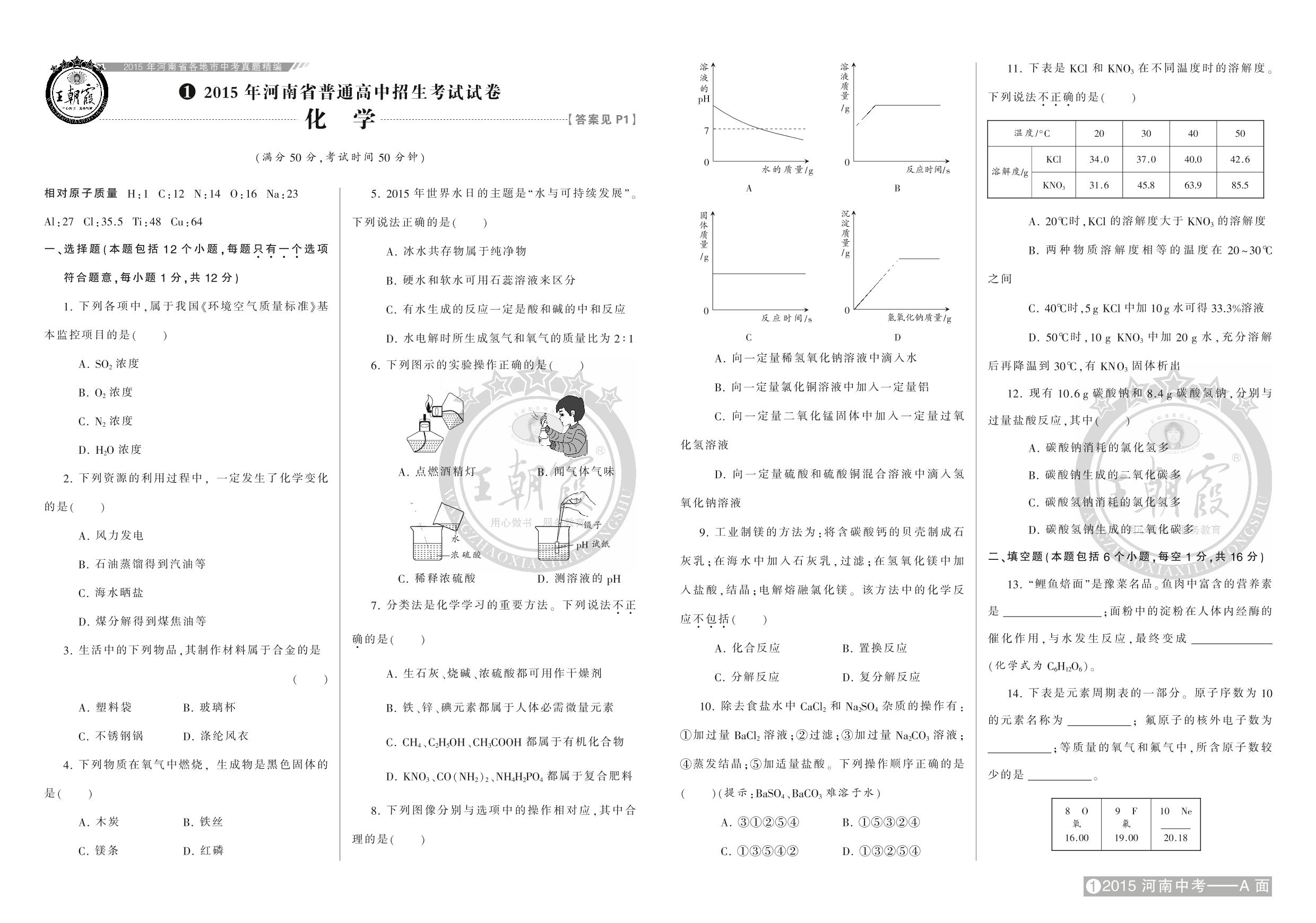 2015年河南省普通高中招生考试试卷【1】