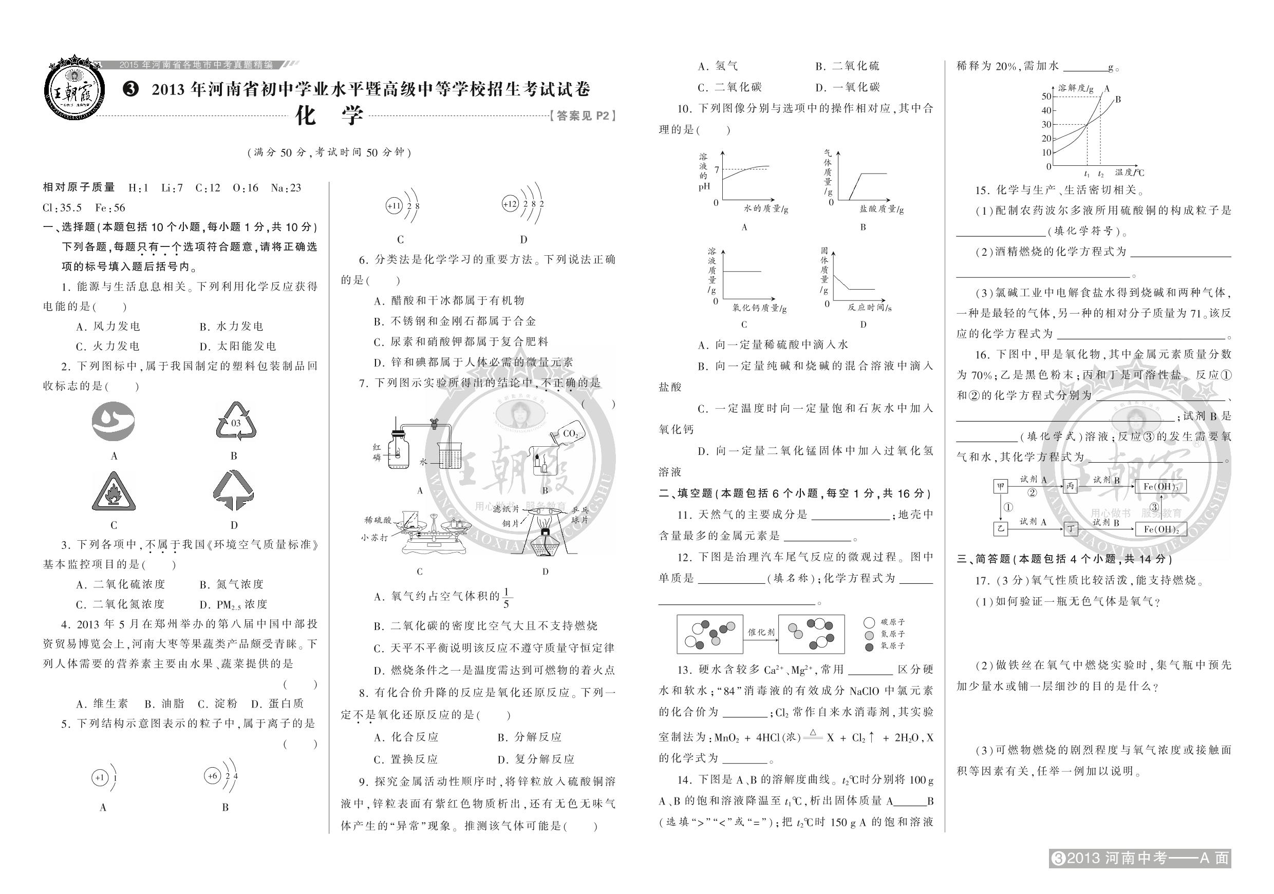 2013年河南省初中学业水平暨高级中等学校招生考试试卷【3】