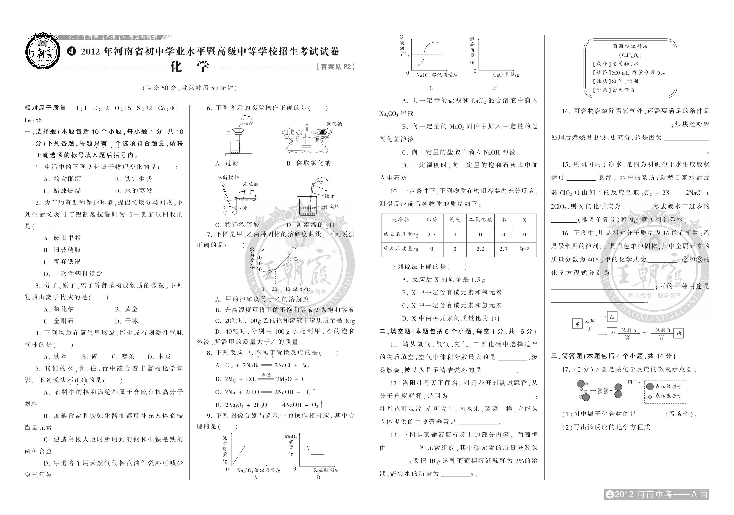 2012年河南省初中学业水平暨高级中等学校招生考试试卷【4】