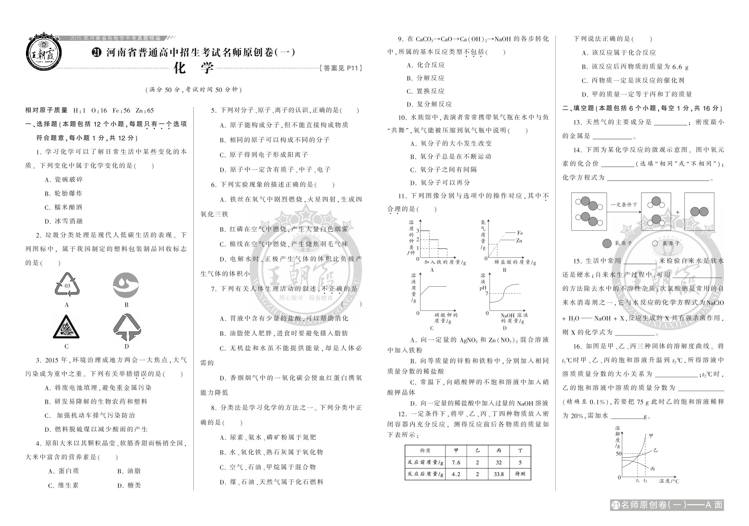 九年级化学全国通用中考卷