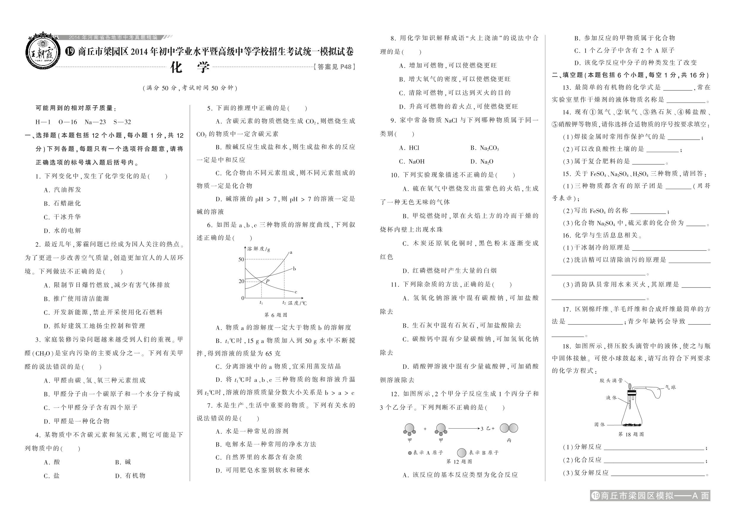 商丘市梁园区2014年初中学业水平暨高级中等学校招生考试统一模拟试卷【18】