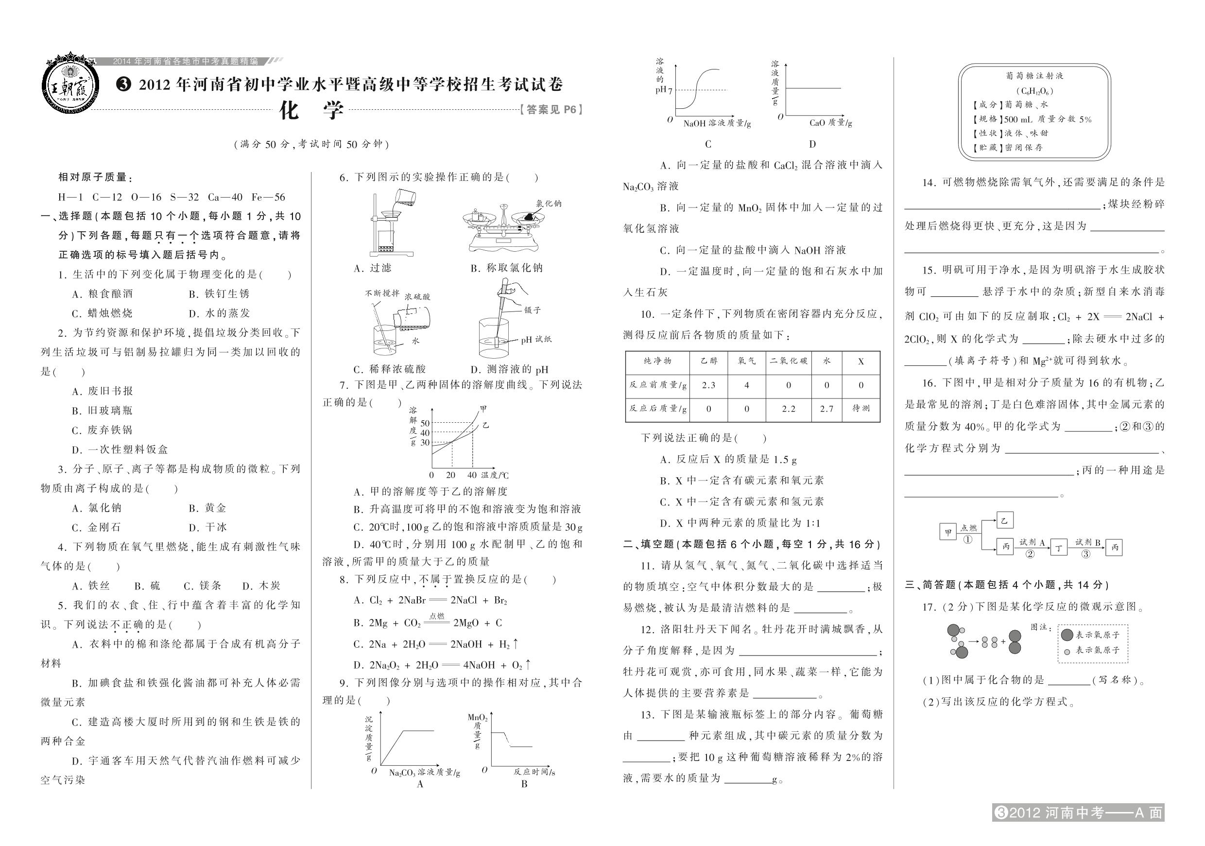 2012年河南省初中学业水平暨高级中等学校招生考试试卷【3】