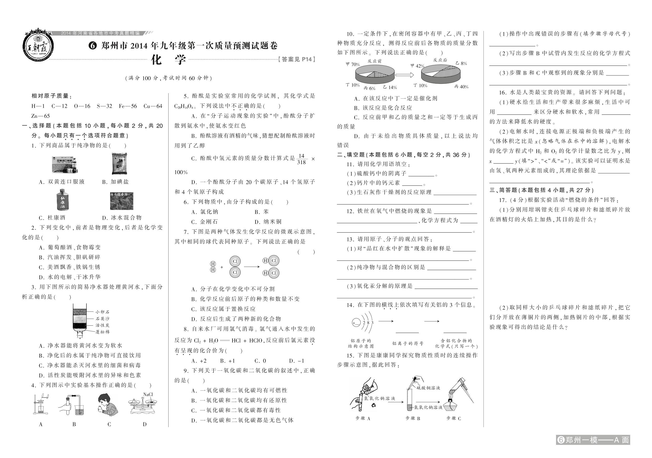 郑州市2014年九年级第一次质量预测试题卷【6】