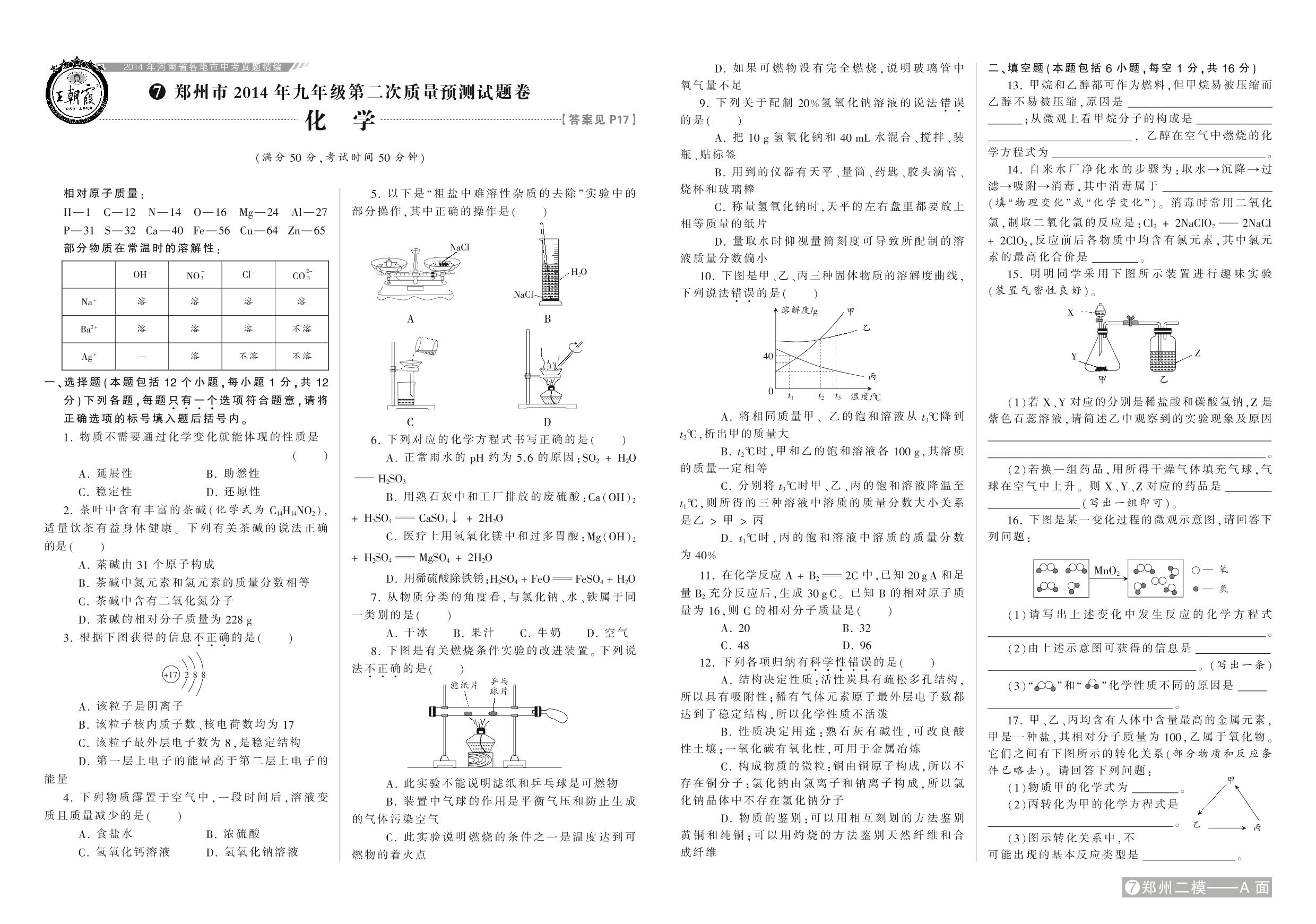 郑州市2014年九年级第二次质量预测试题卷【7】
