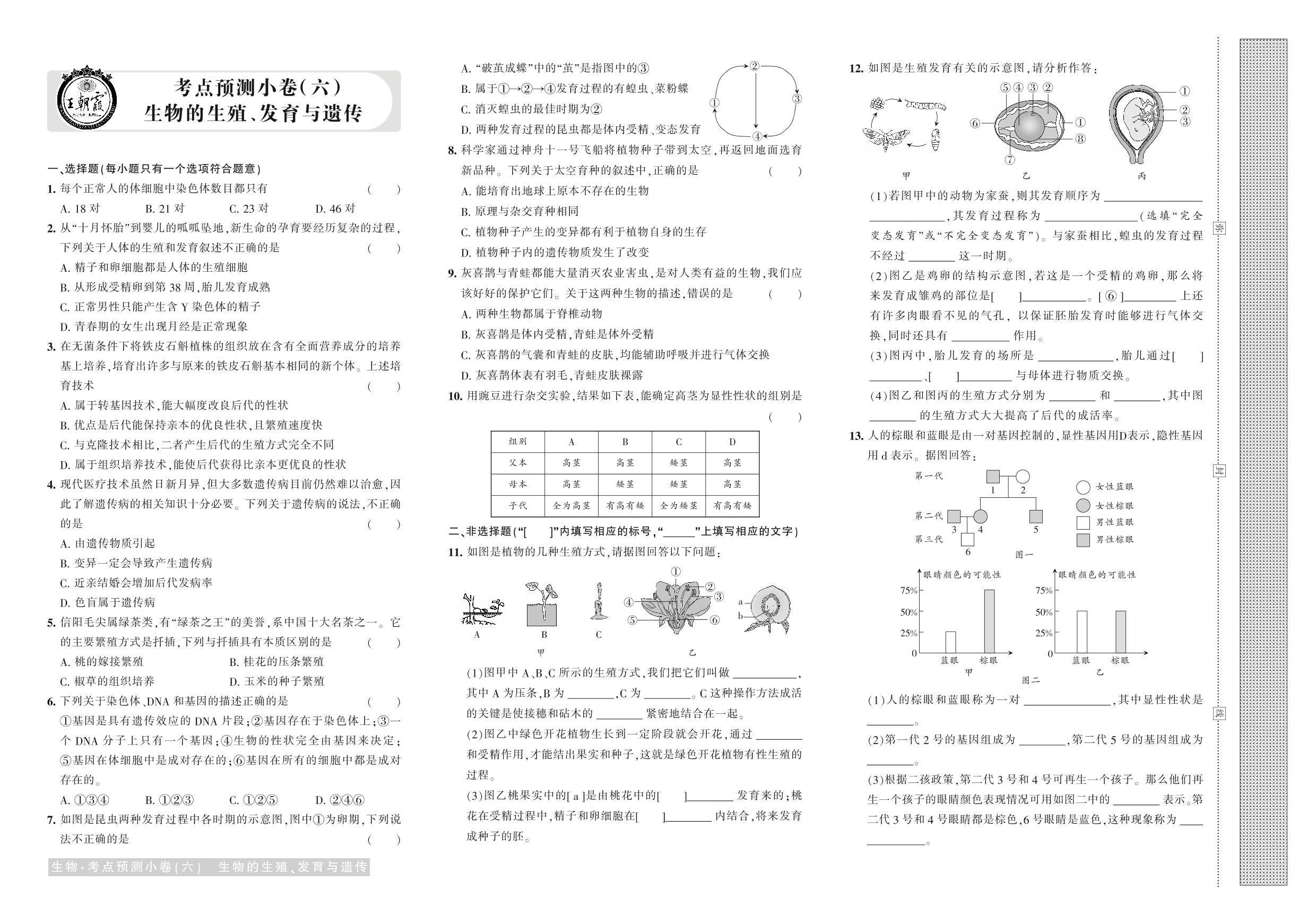 2019年河南中考生物考点预测小卷(六)生物的生殖、发育与遗传