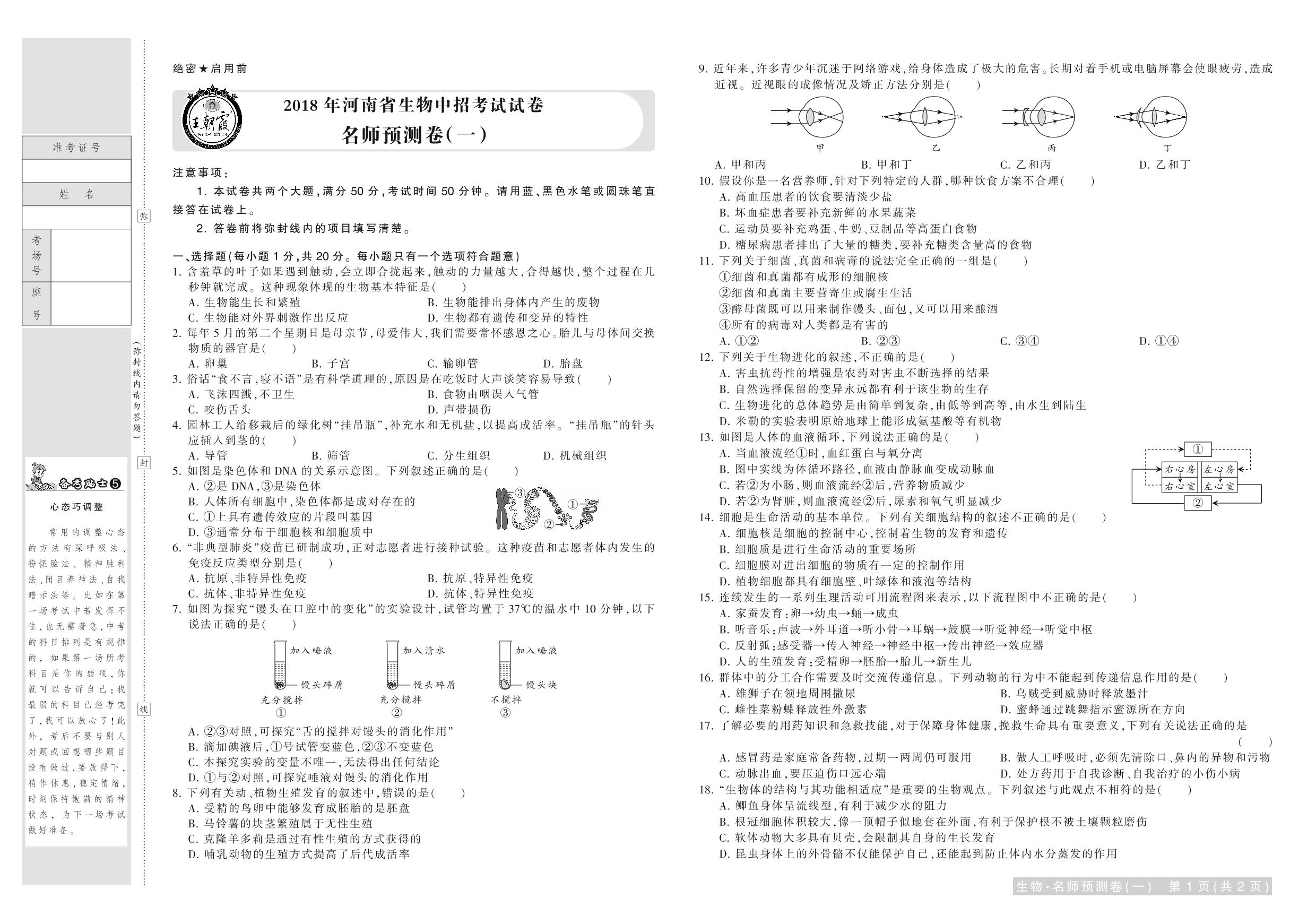 2018年河南中考预测卷(一)
