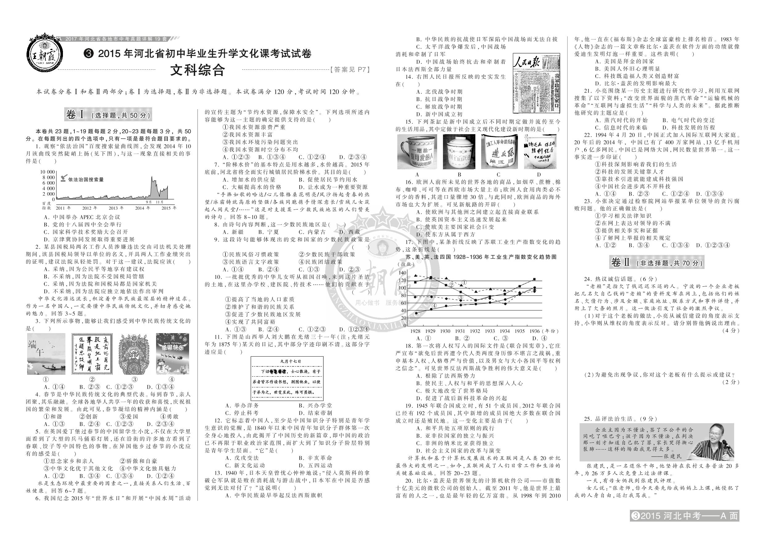 2015年河北省初中毕业升学文化课考试试卷【3】