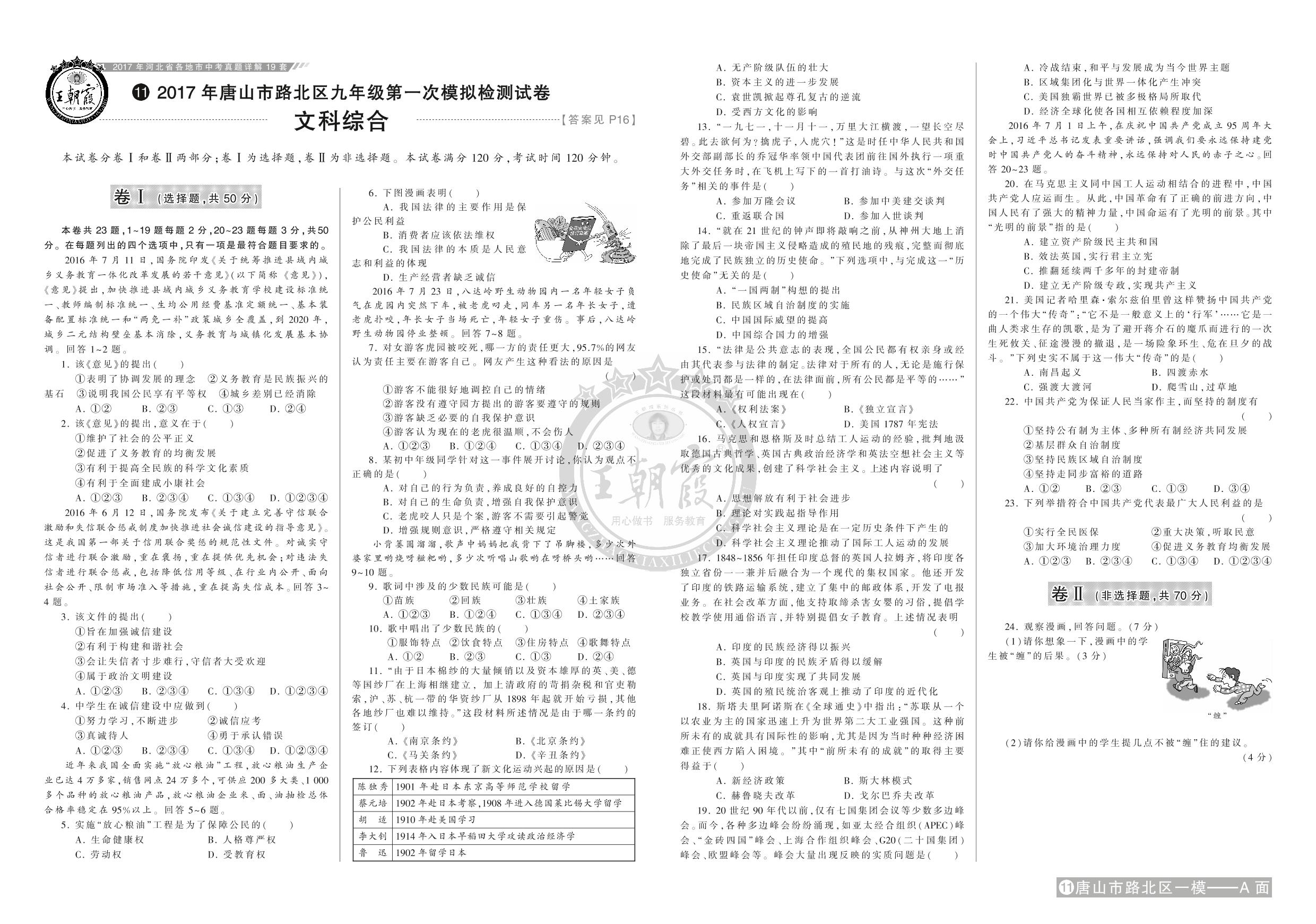 2017年唐山市路北区九年级第一次模拟检测试卷【11】