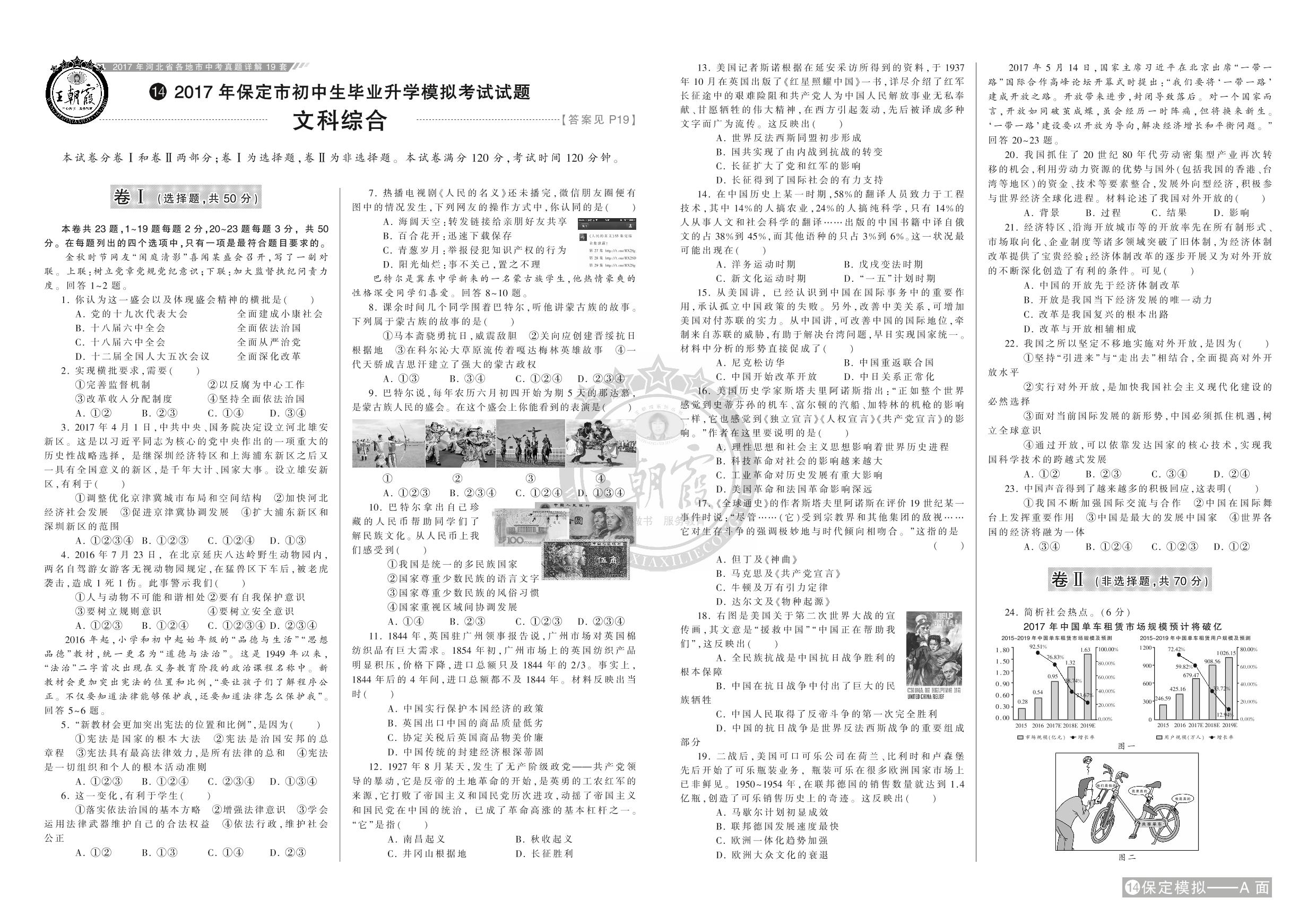 2017年保定市初中毕业生升学模拟考试试题【14】