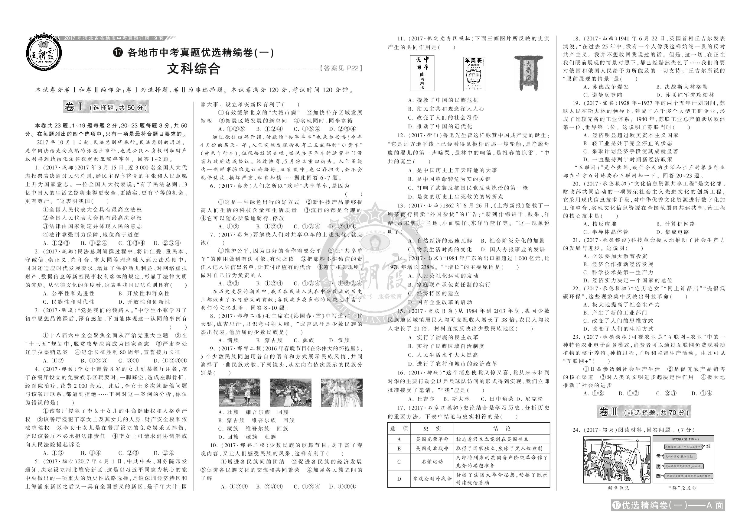 各地市中考真题优选精编卷(一)【17】
