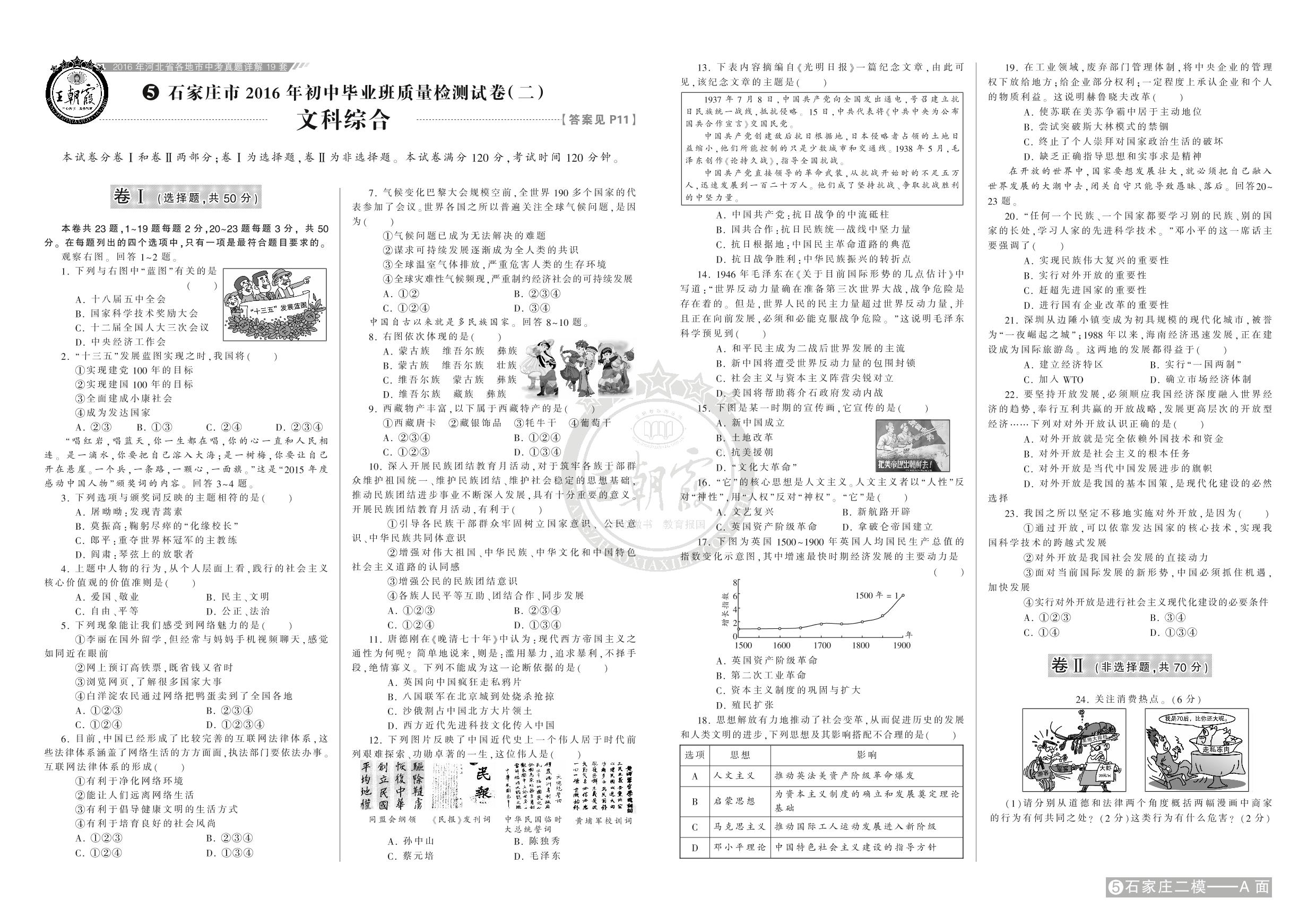 石家庄市2016年初中毕业班质量检测试卷(二)【5】