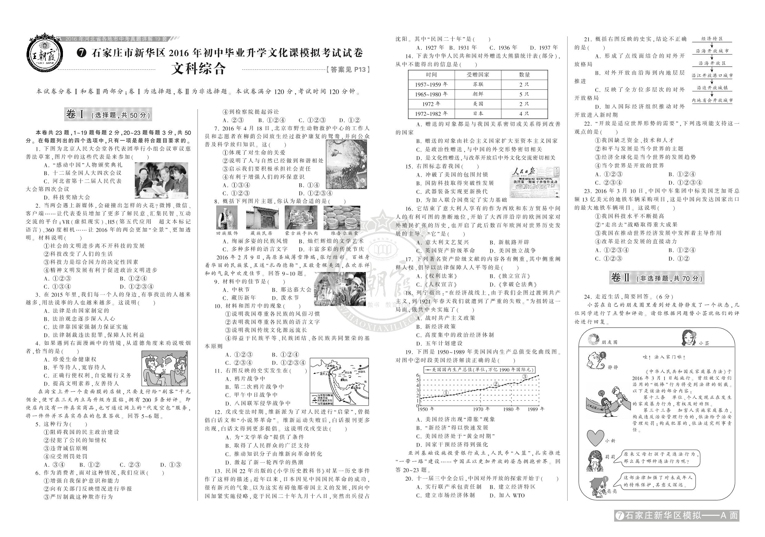 石家庄市新华区2016年初中毕业升学文化课模拟考试试卷【7】
