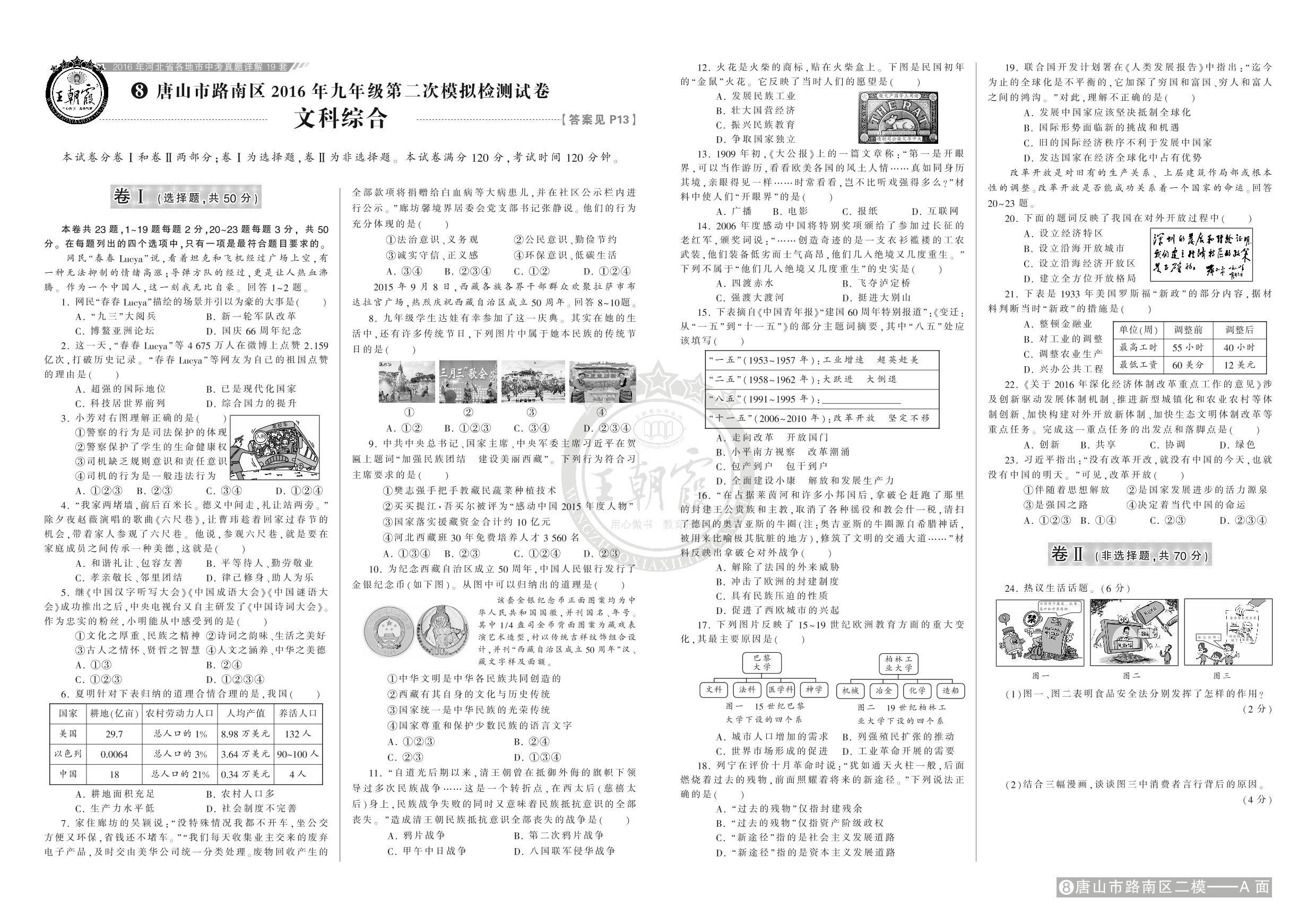唐山市路南区2016年九年级第二次模拟检测试卷【8】