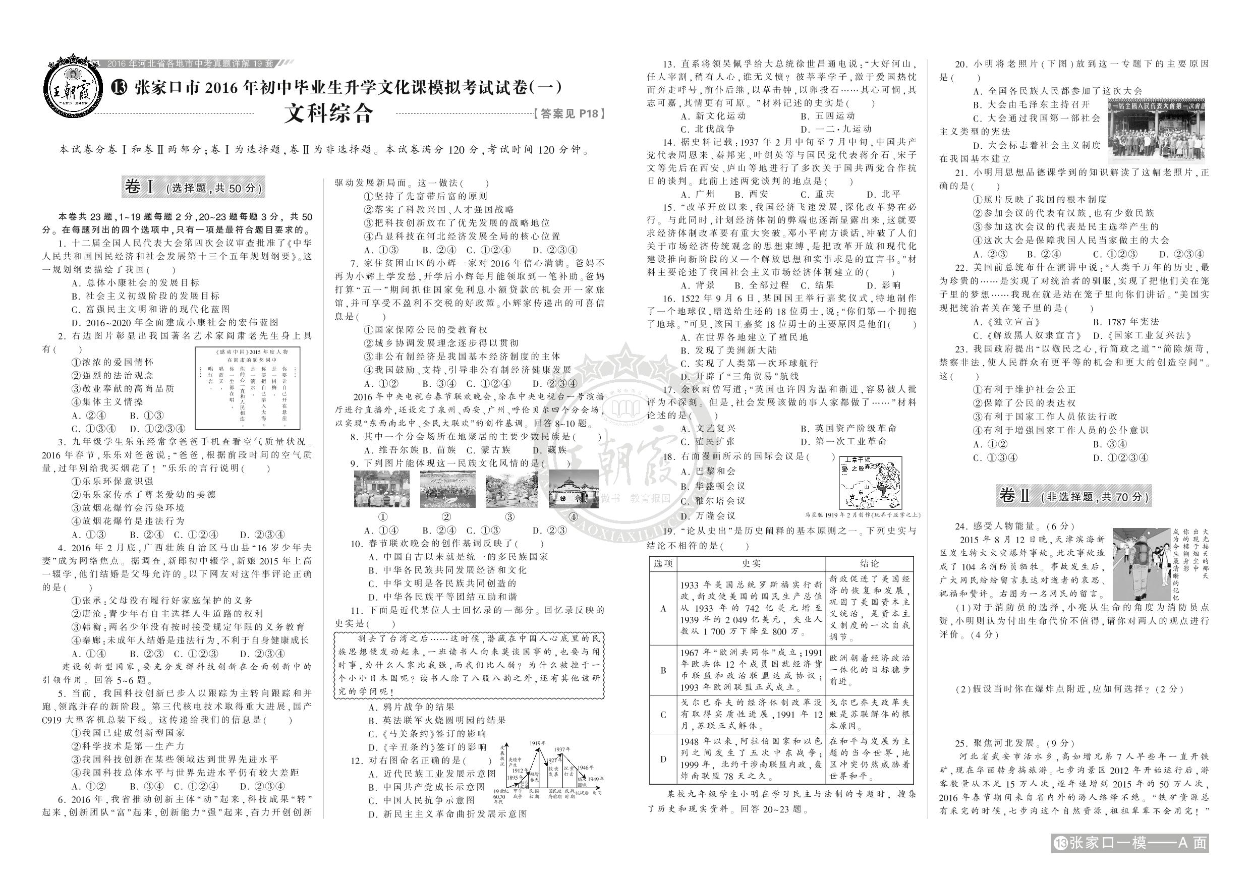 张家口市2016年初中毕业生升学文化课模拟考试试卷(一)【13】