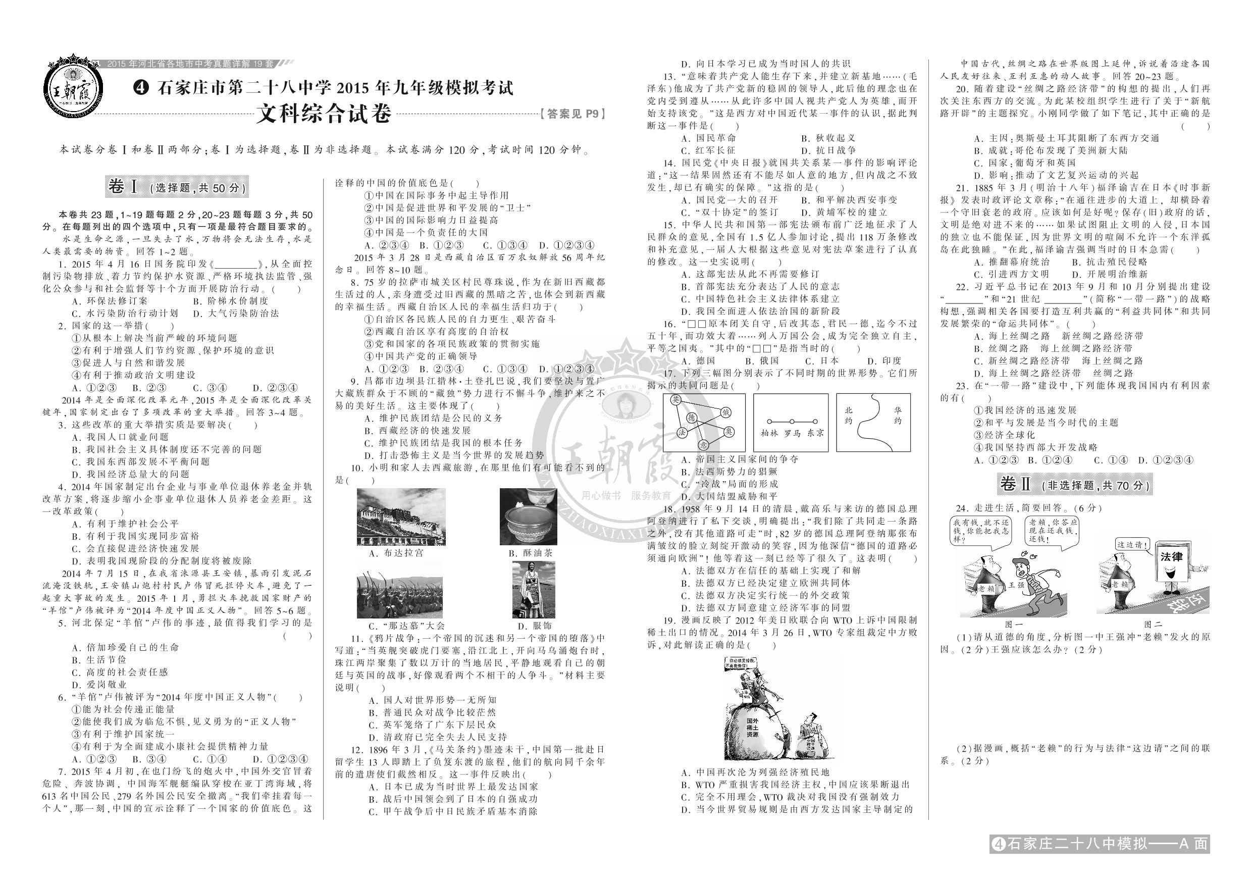 石家庄市第二十八中学2015年九年级模拟考试【4】