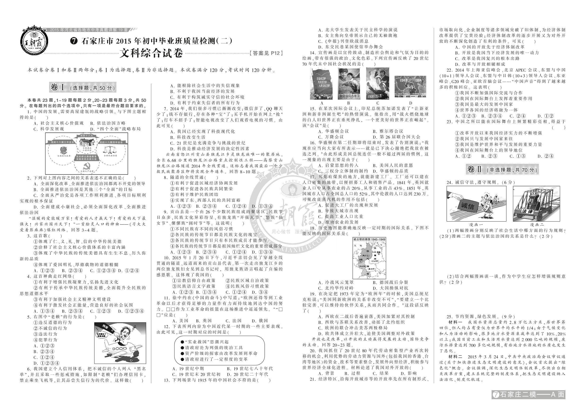 石家庄市2015年初中毕业班质量检测(二)【7】