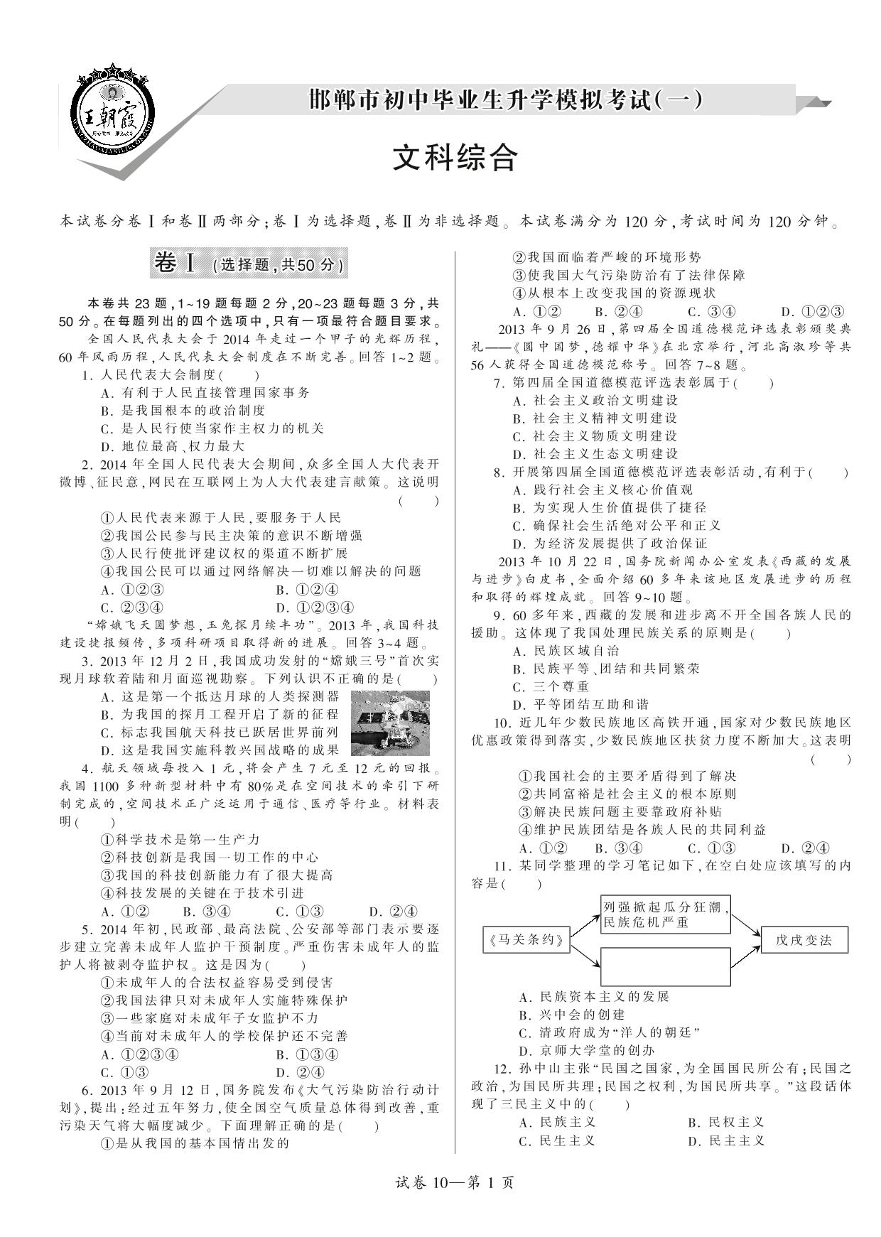 邯郸市初中毕业生升学模拟考试(一)【10】
