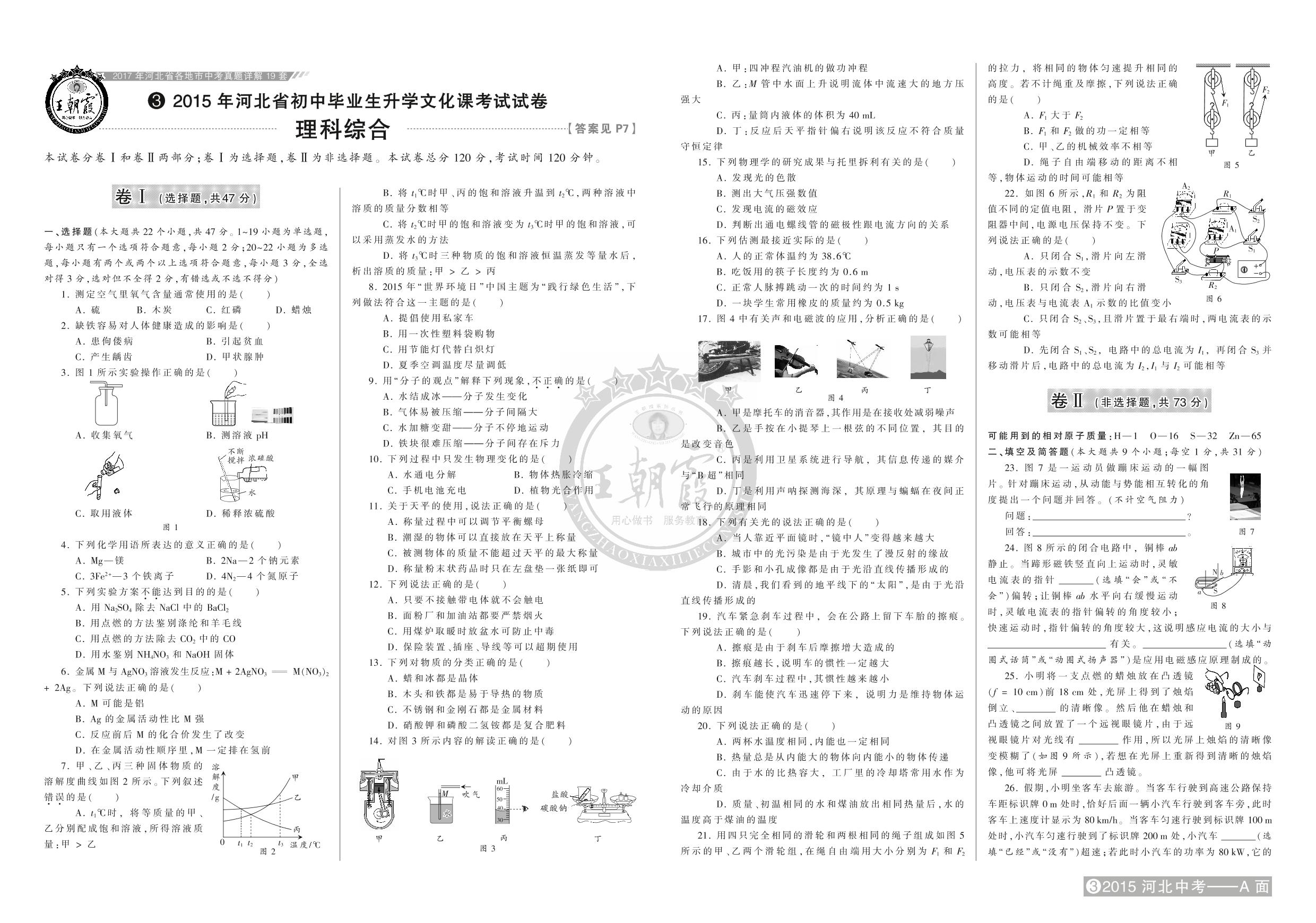 2015年河北省初中毕业升学文化课考试试卷【3】