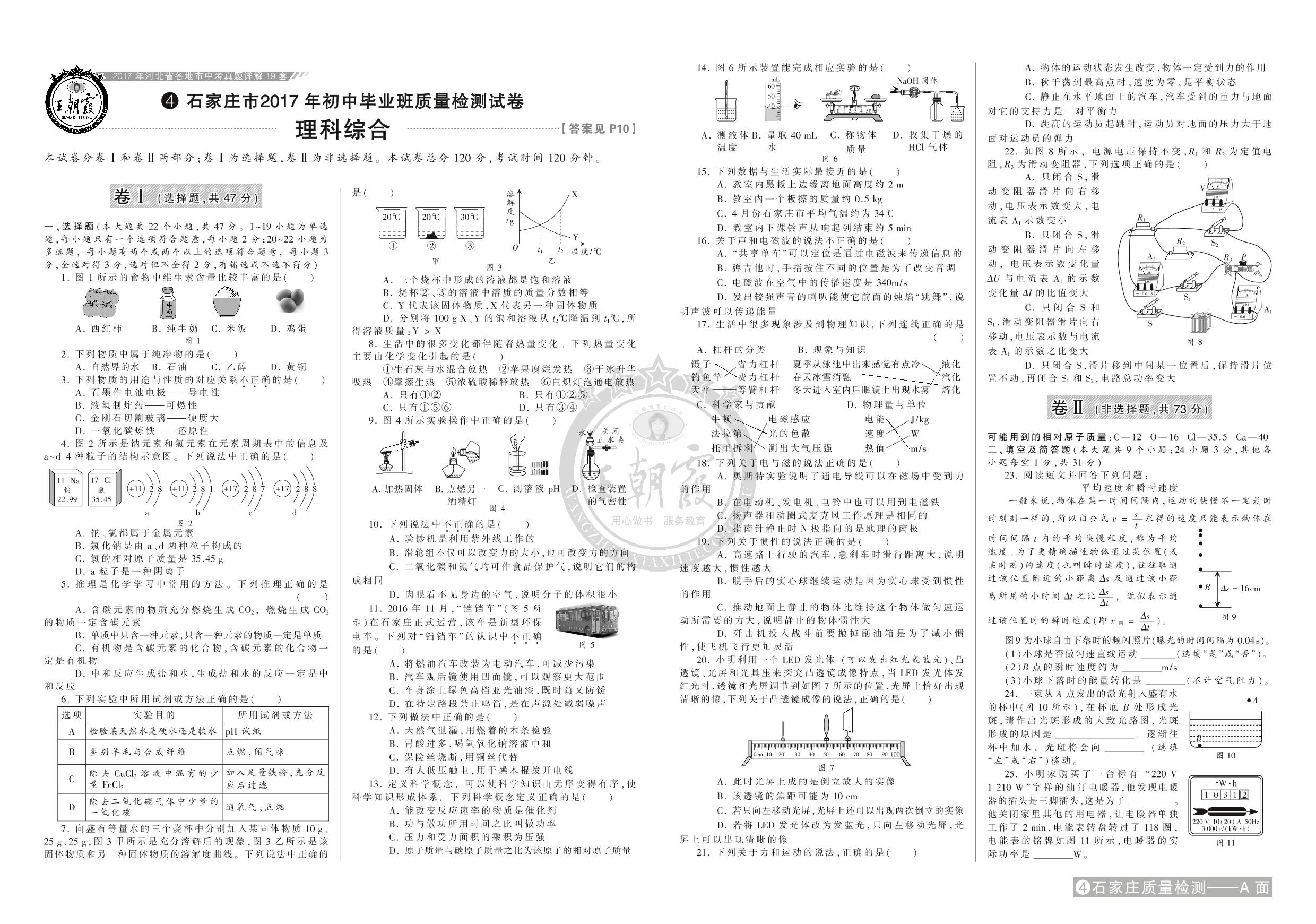 石家庄市2017年初中毕业班质量检测试卷【4】