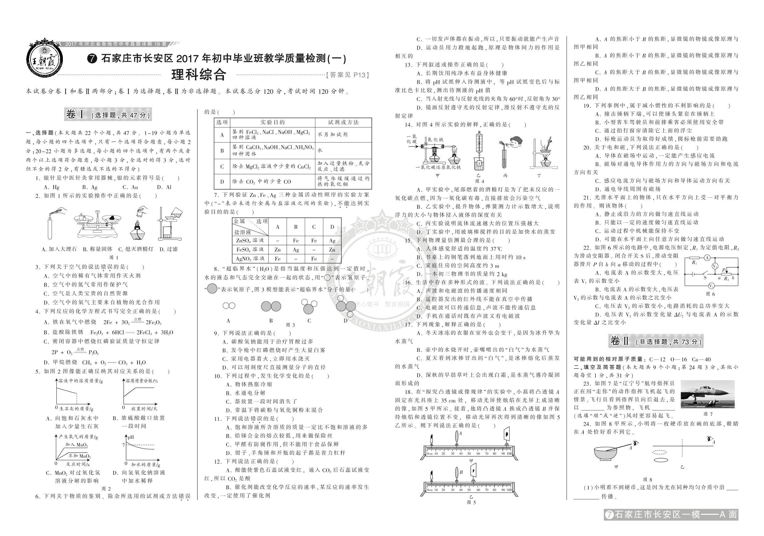 石家庄市长安区2017年初中毕业班教学质量检测(一)【7】