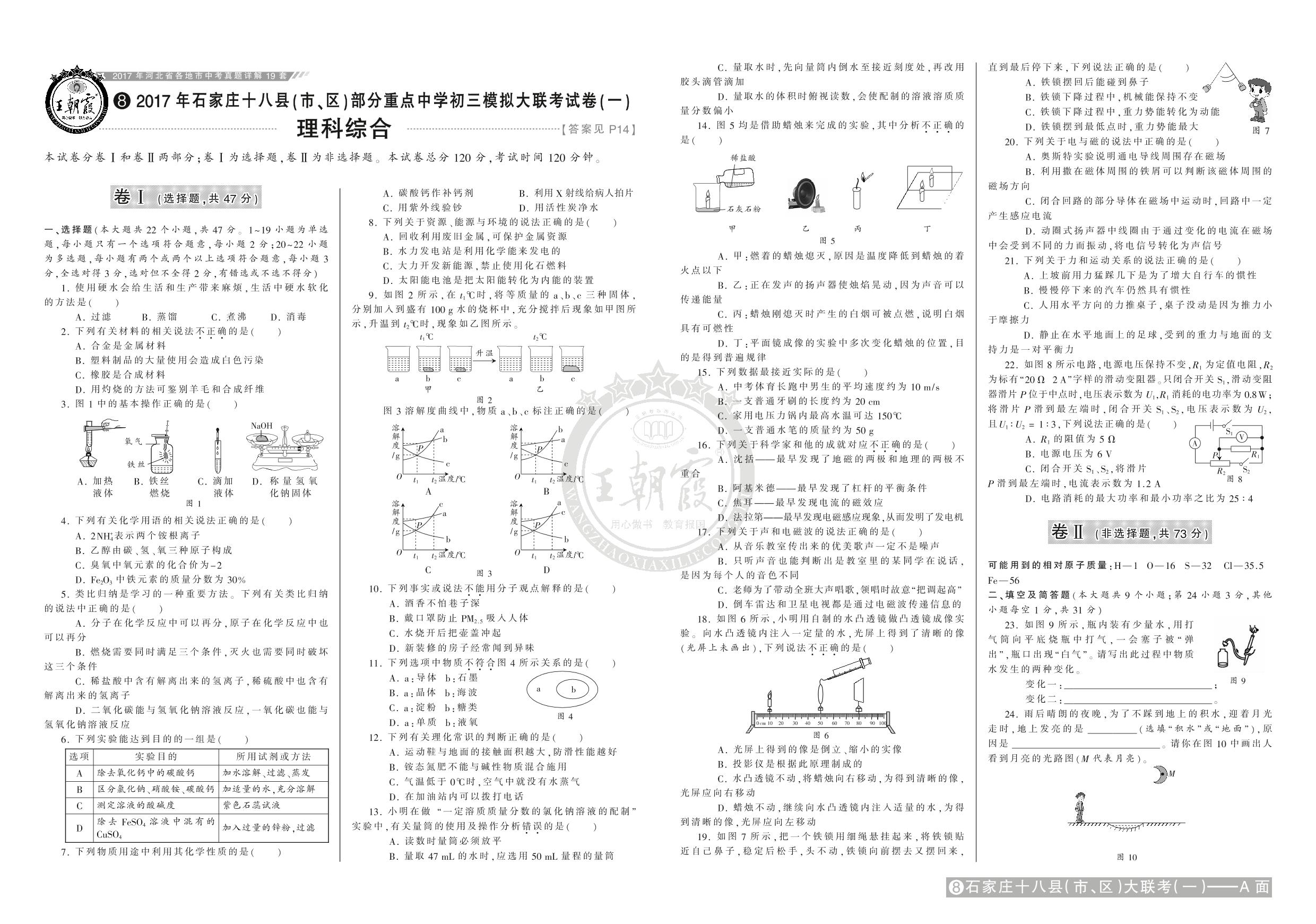 2017年石家庄十八县(市、区)部分重点中学初三模拟大联考试卷(一)【8】