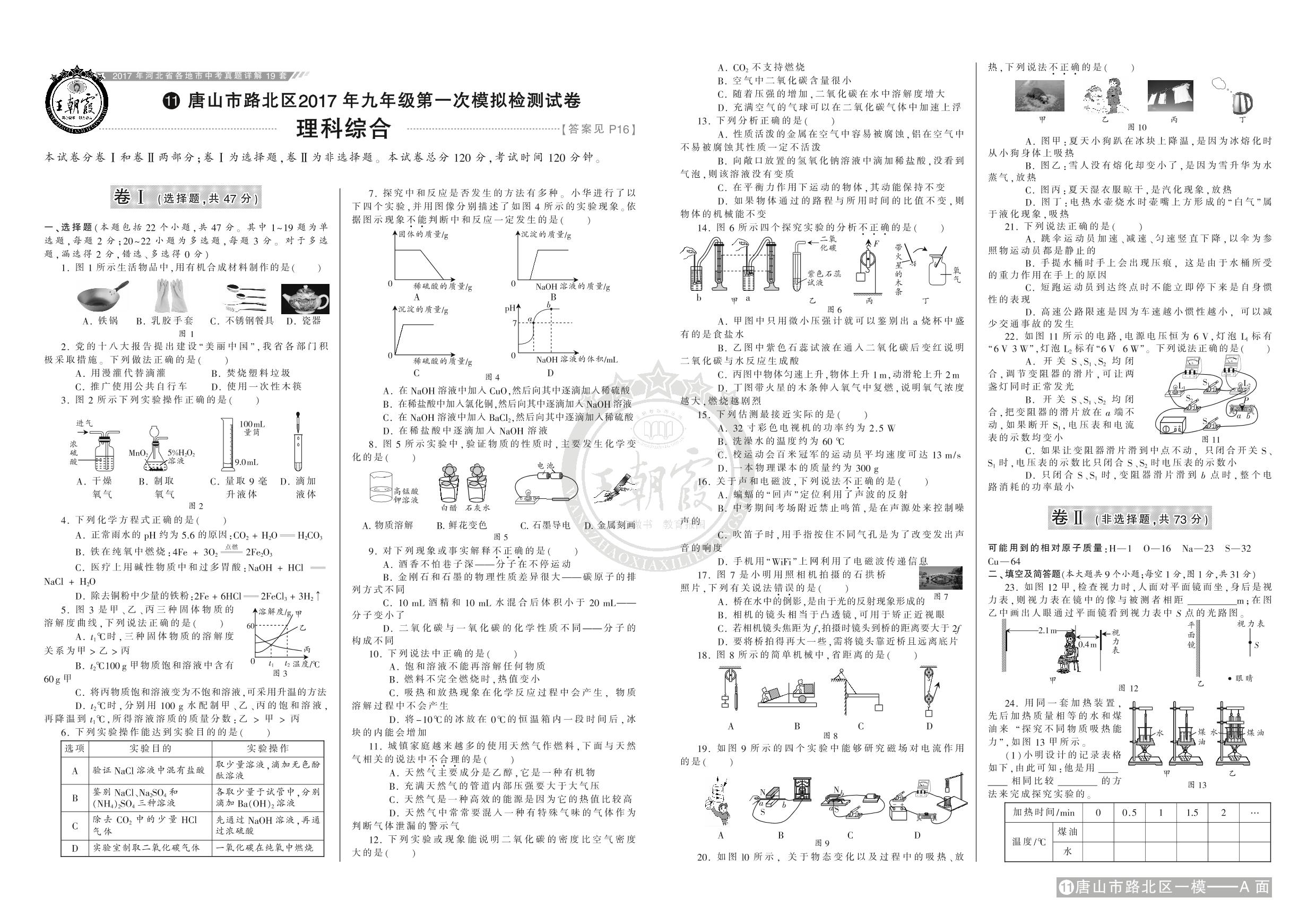 唐山市路北区2017年九年级第一次模拟检测试卷【11】