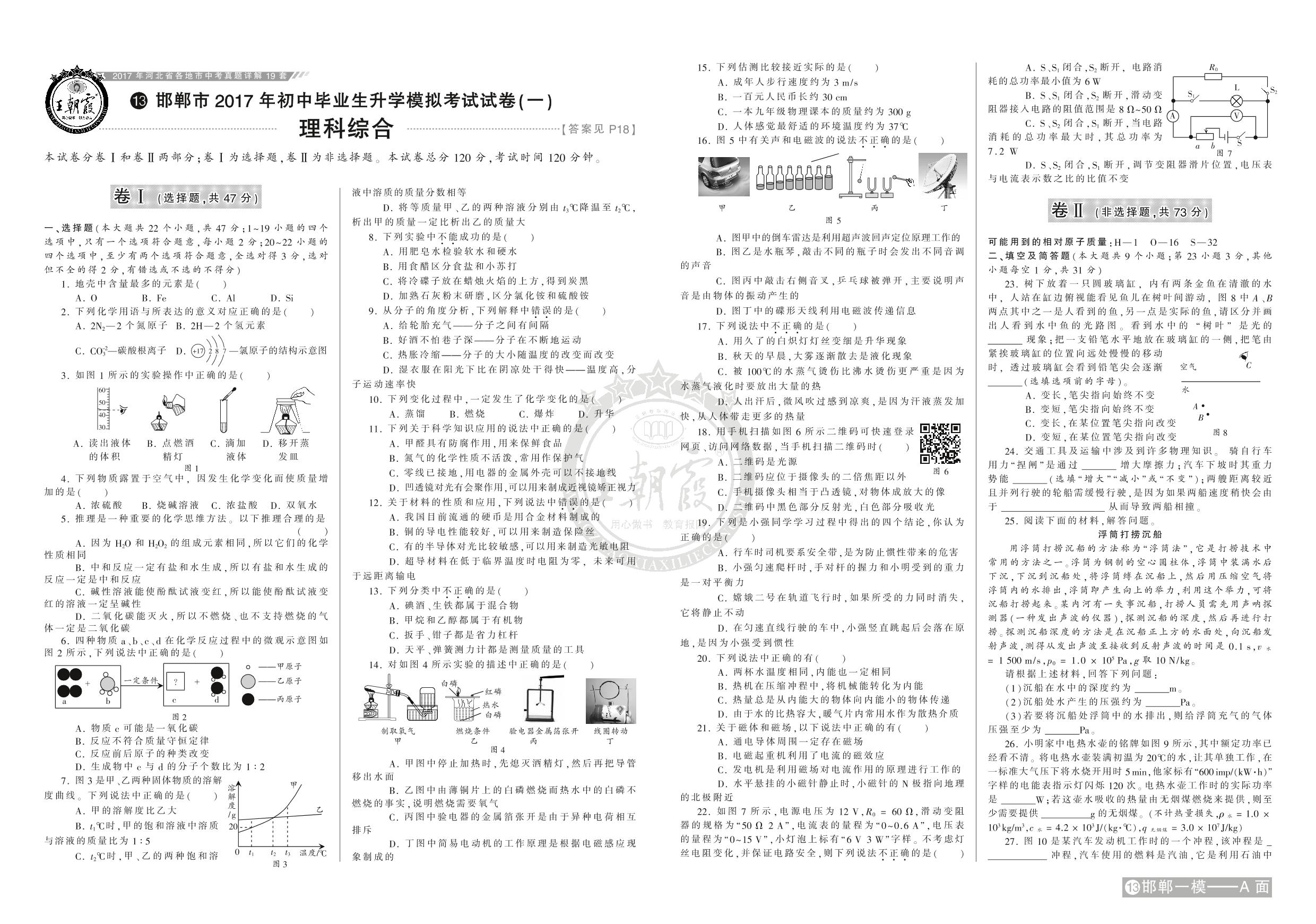 邯郸市2017年初中毕业生升学模拟考试试卷(一)【13】