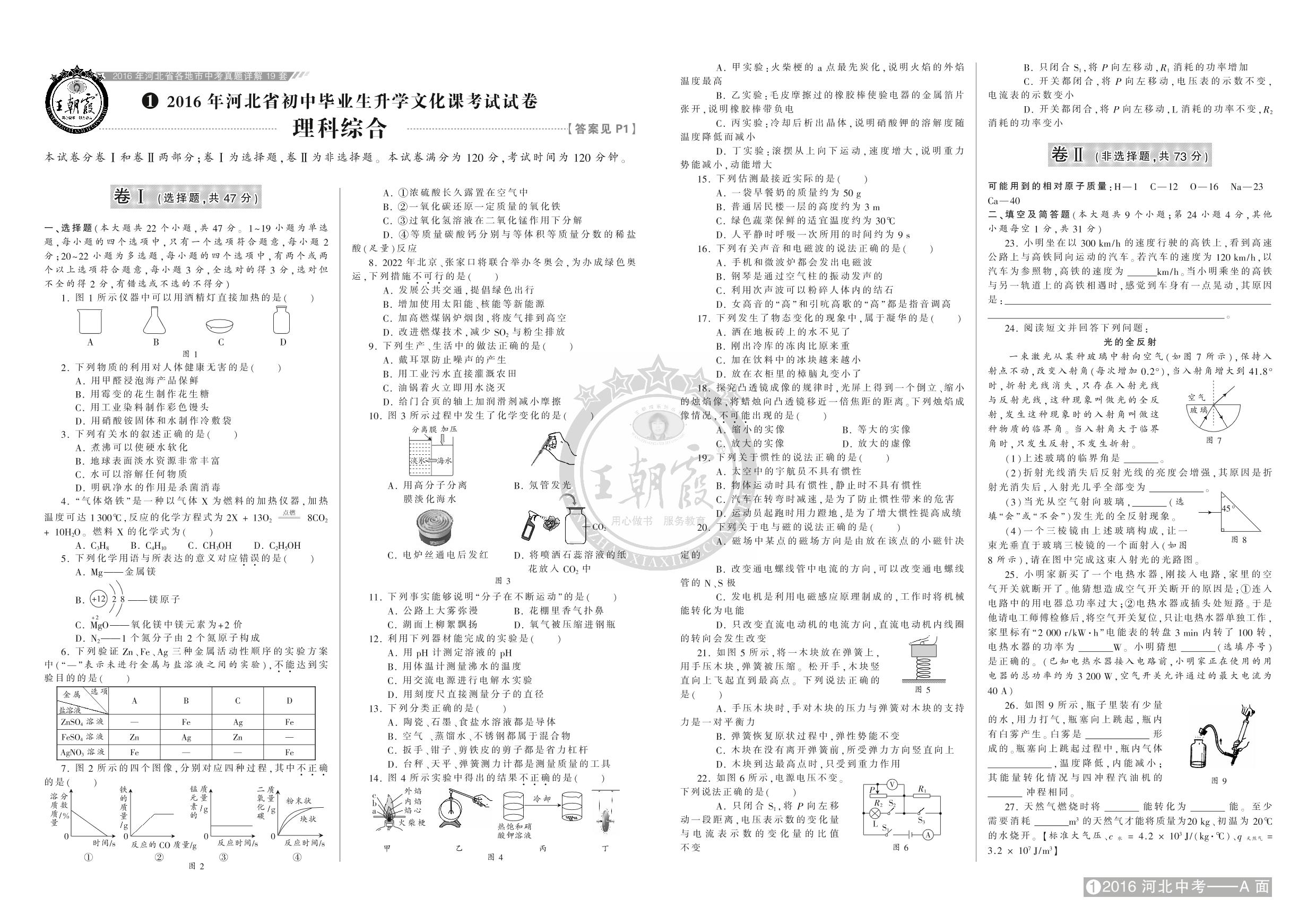 2016年河北省初中毕业生升学文化课考试试卷【1】