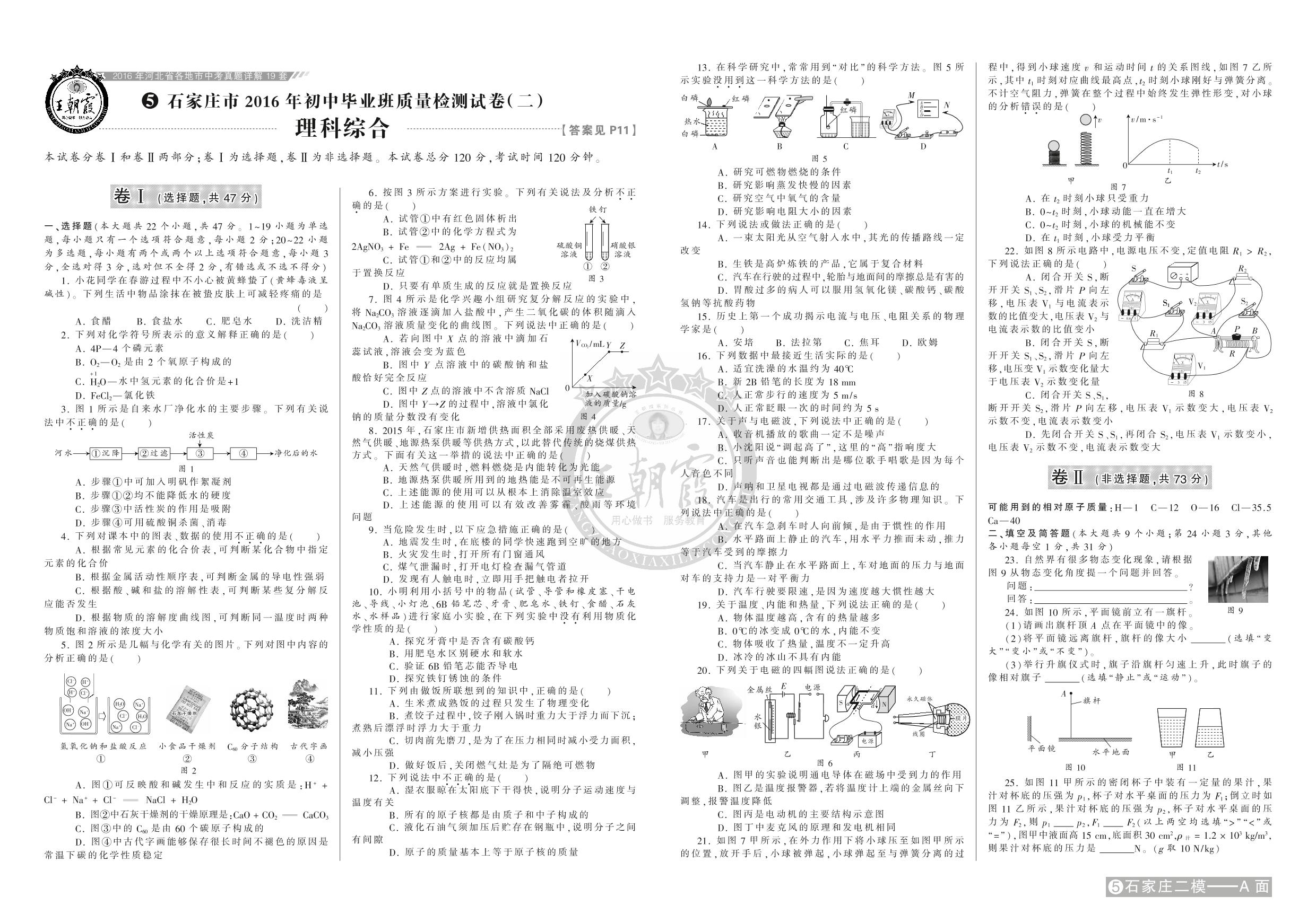 石家庄市2016年初中毕业班质量检测试卷(二)【5】