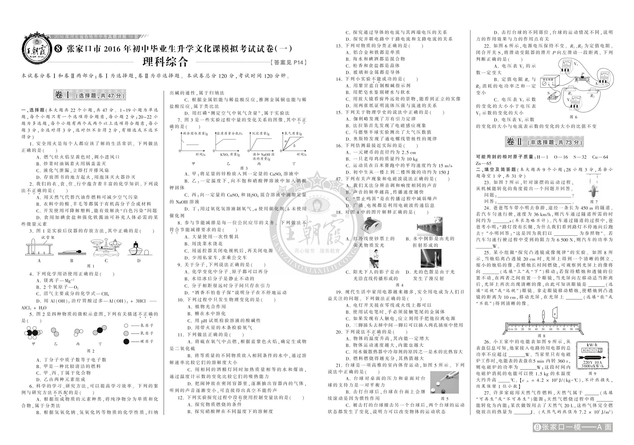张家口市2016年初中毕业生升学文化课模拟考试试卷(一)【8】